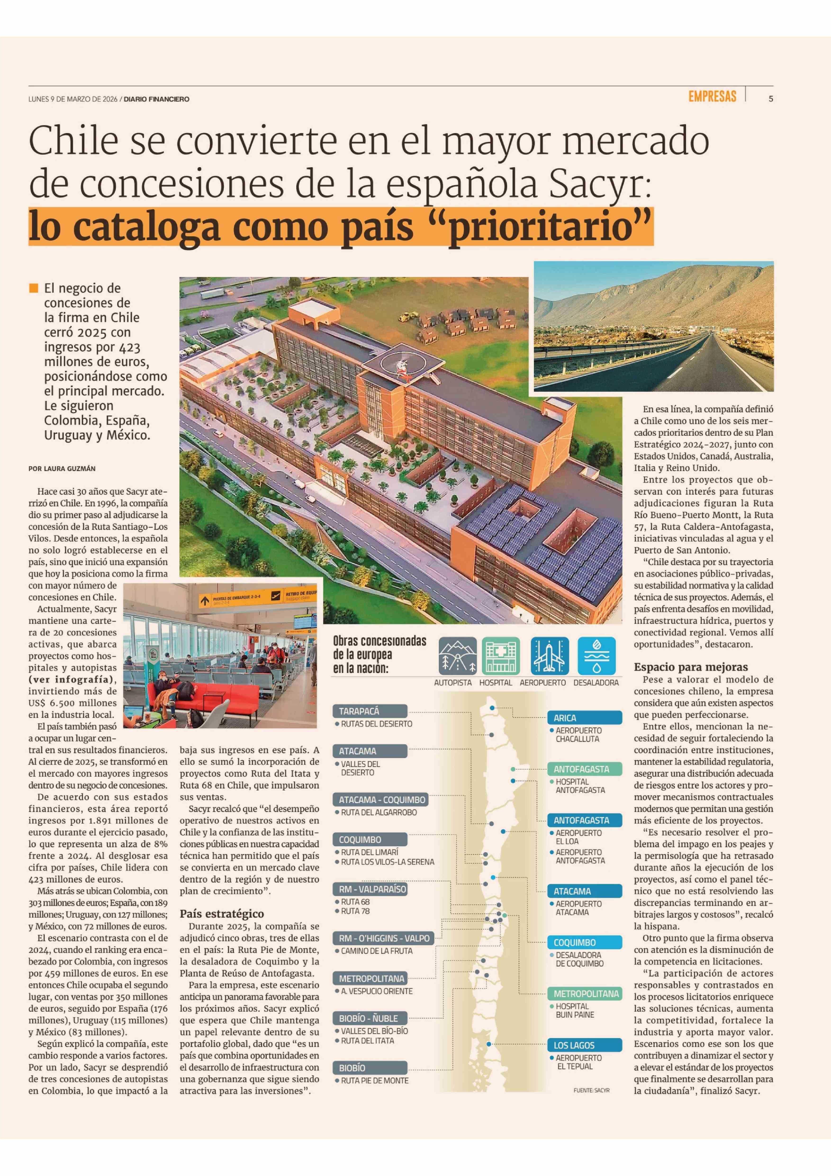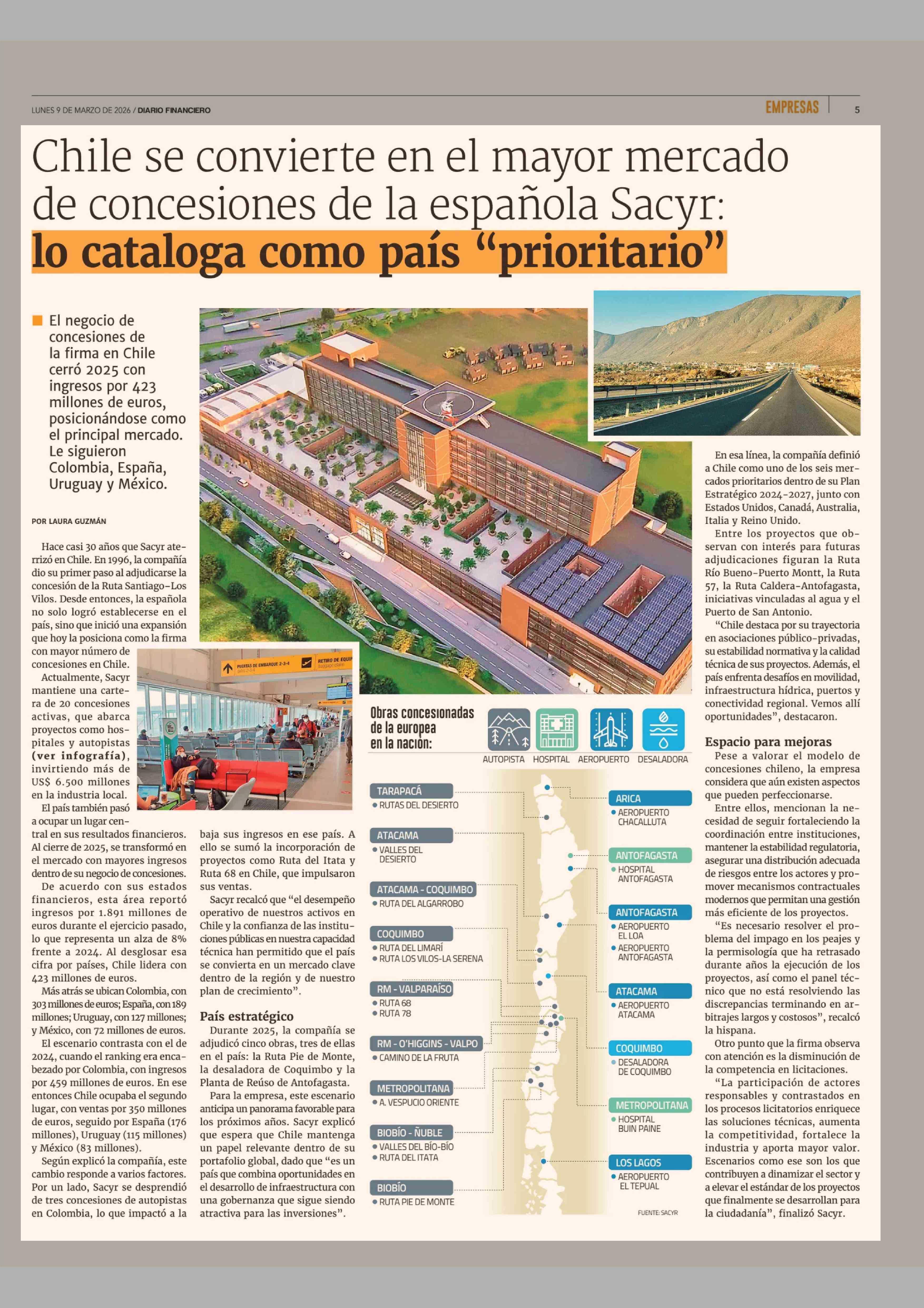 Título: Chile se convierte en el mayor mercado de concesiones de la española Sacyr: lo cataloga como país "prioritario"