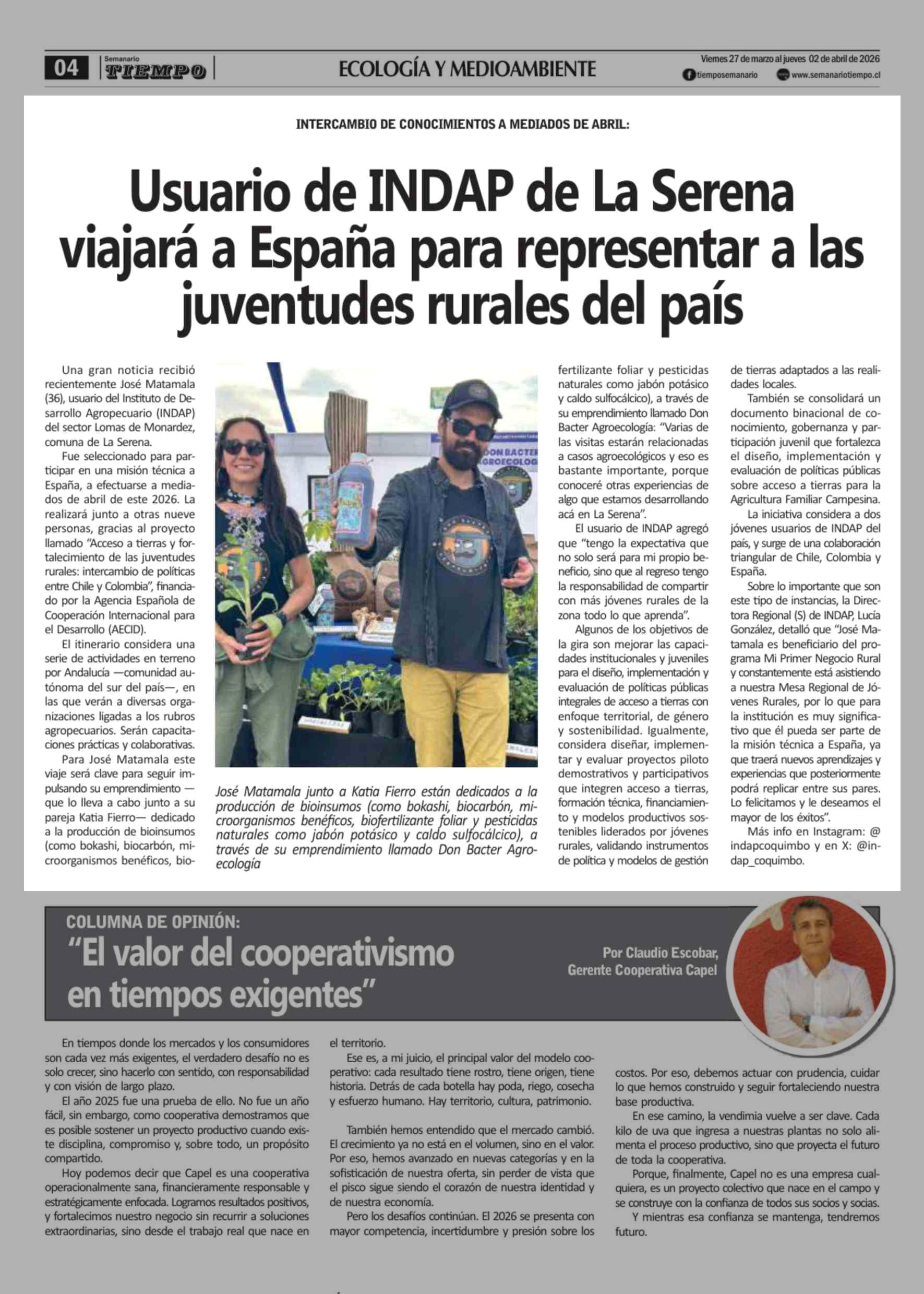 Título: Usuario de INDAP de La Serena viajara a Espana para representar a las juventudes rurales del país