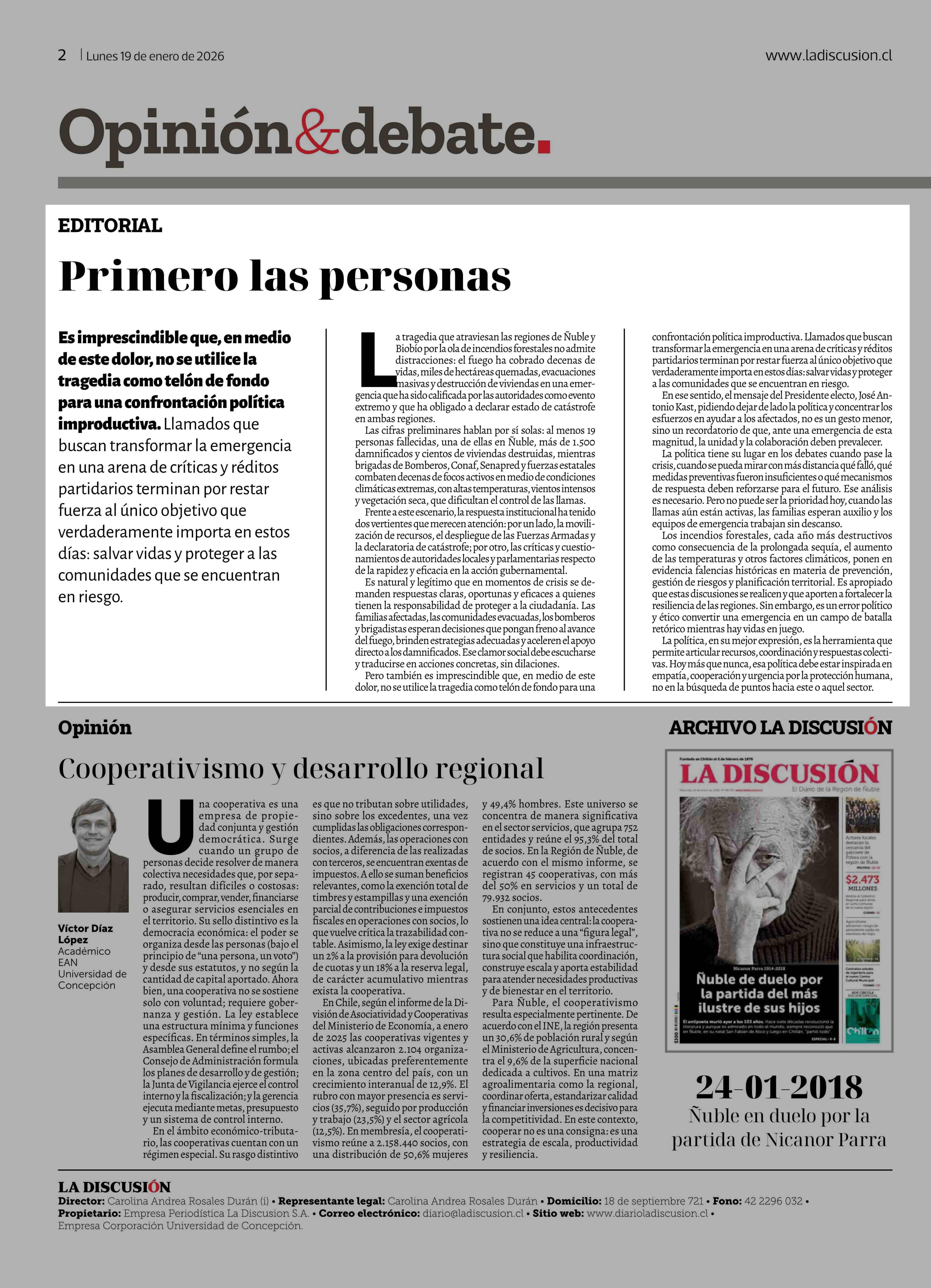 Editorial: Primero las personas 19-01-2026 La Discusión |