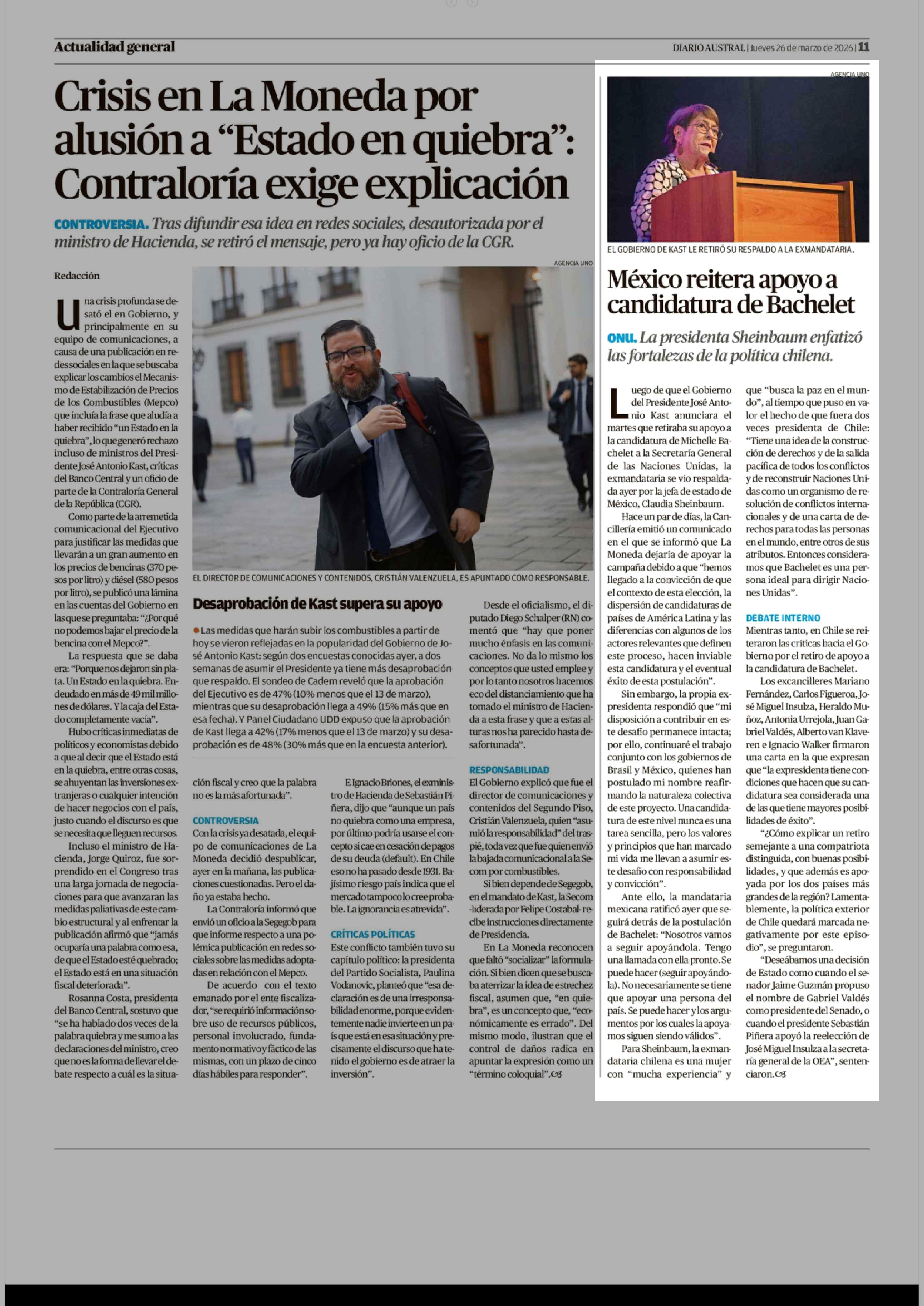 Fuente: Diario Austral Región de Los Ríos (Diario Austral Región de Los Ríos) Página(s): 11