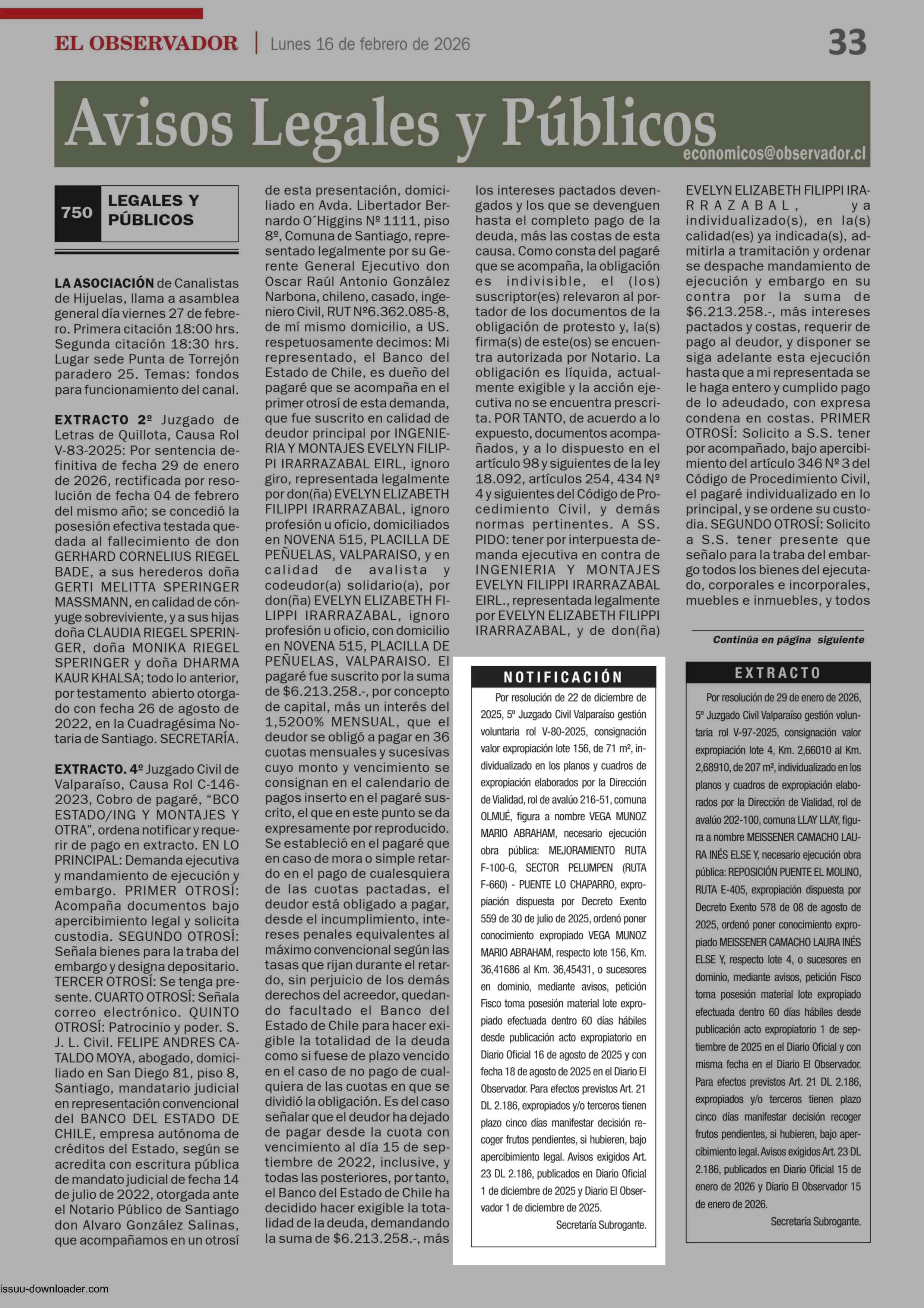Fuente: El Observador Vespertino (El Observador Vespertino) Página(s): 33