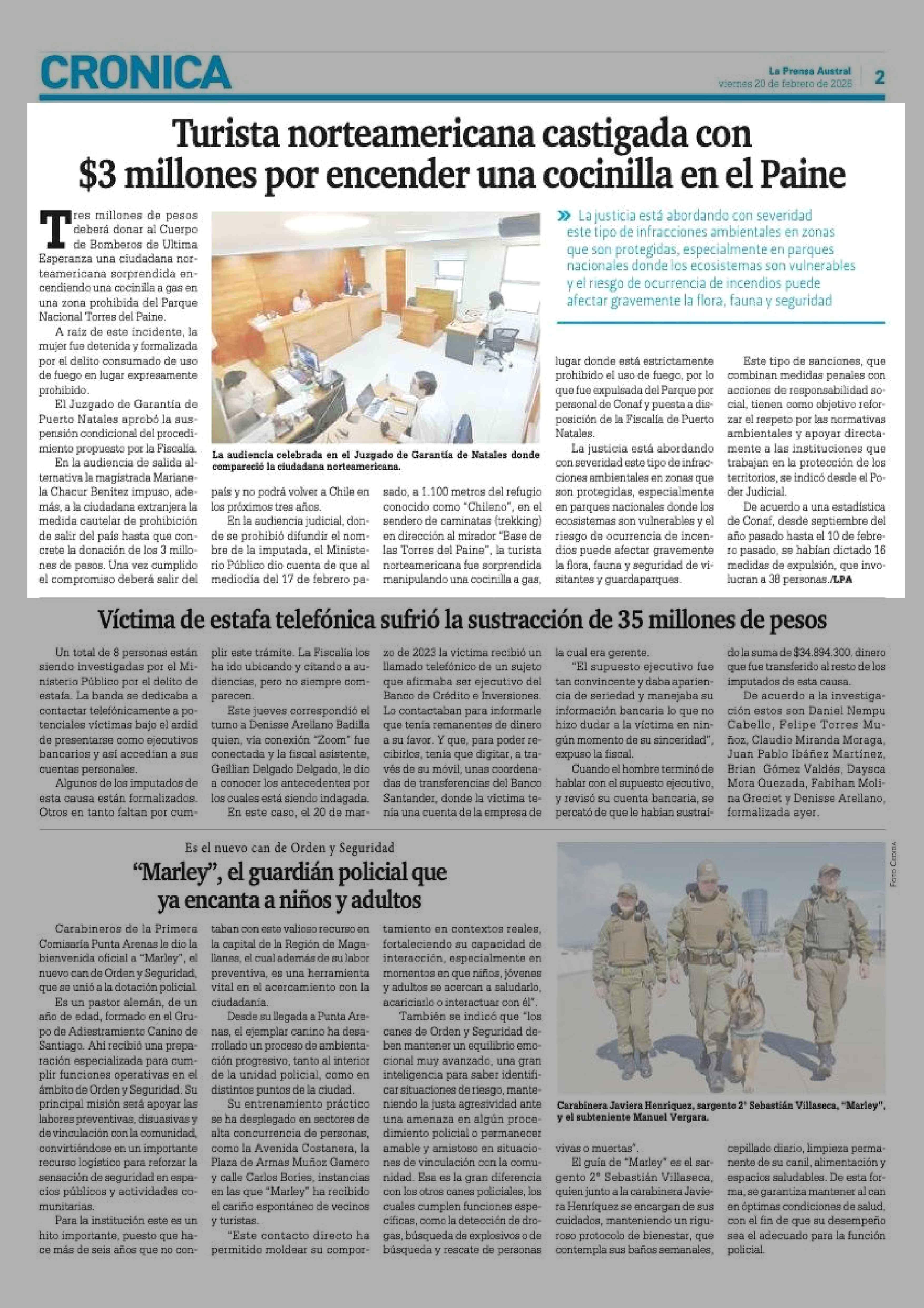Fecha: 20-02-2026 Sector: Noticia general Región: Región de Magallanes y de la Antártica Chilena