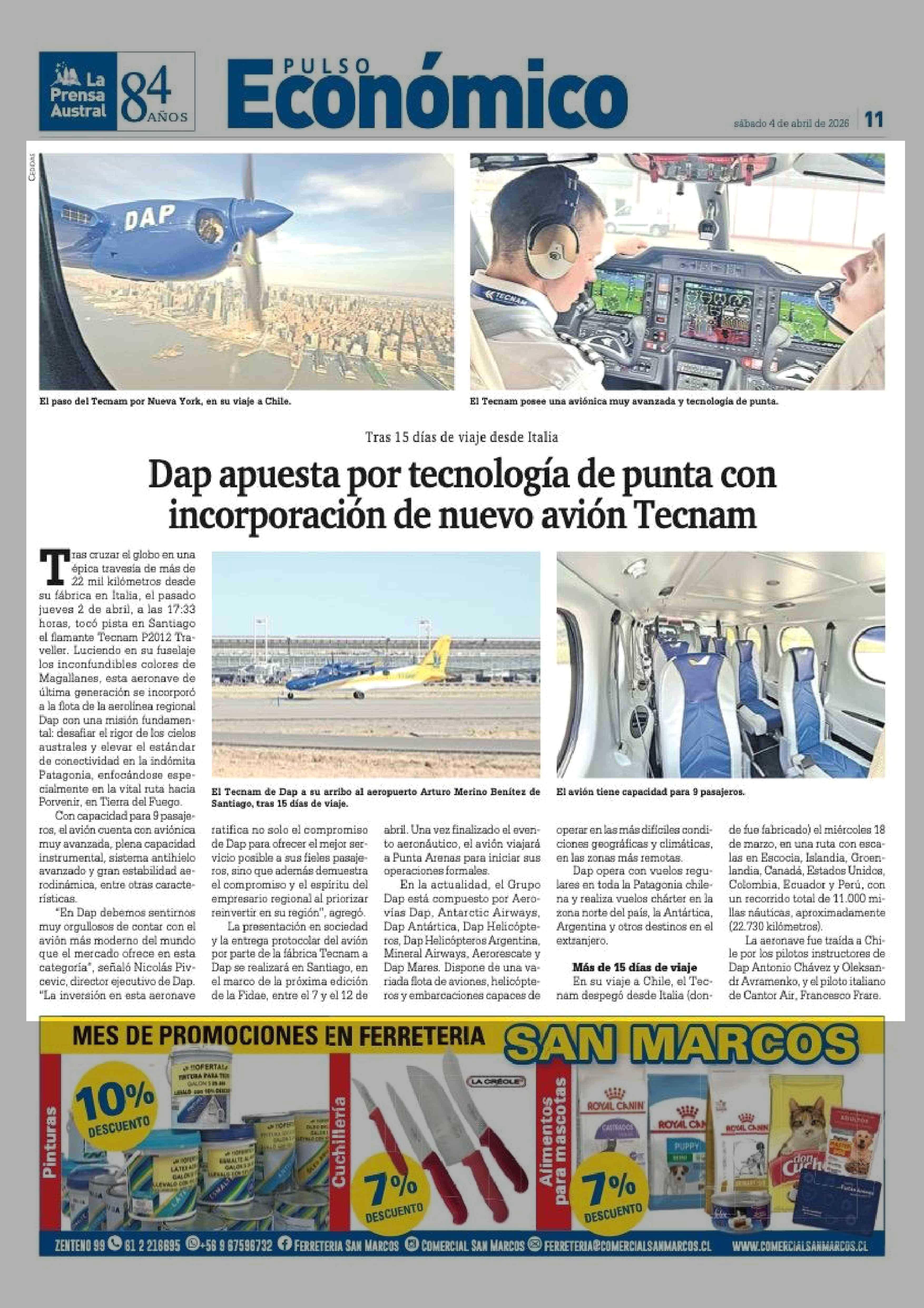 Título: Dap apuesta por tecnología de punta con incorporación de nuevo avión Tecnam