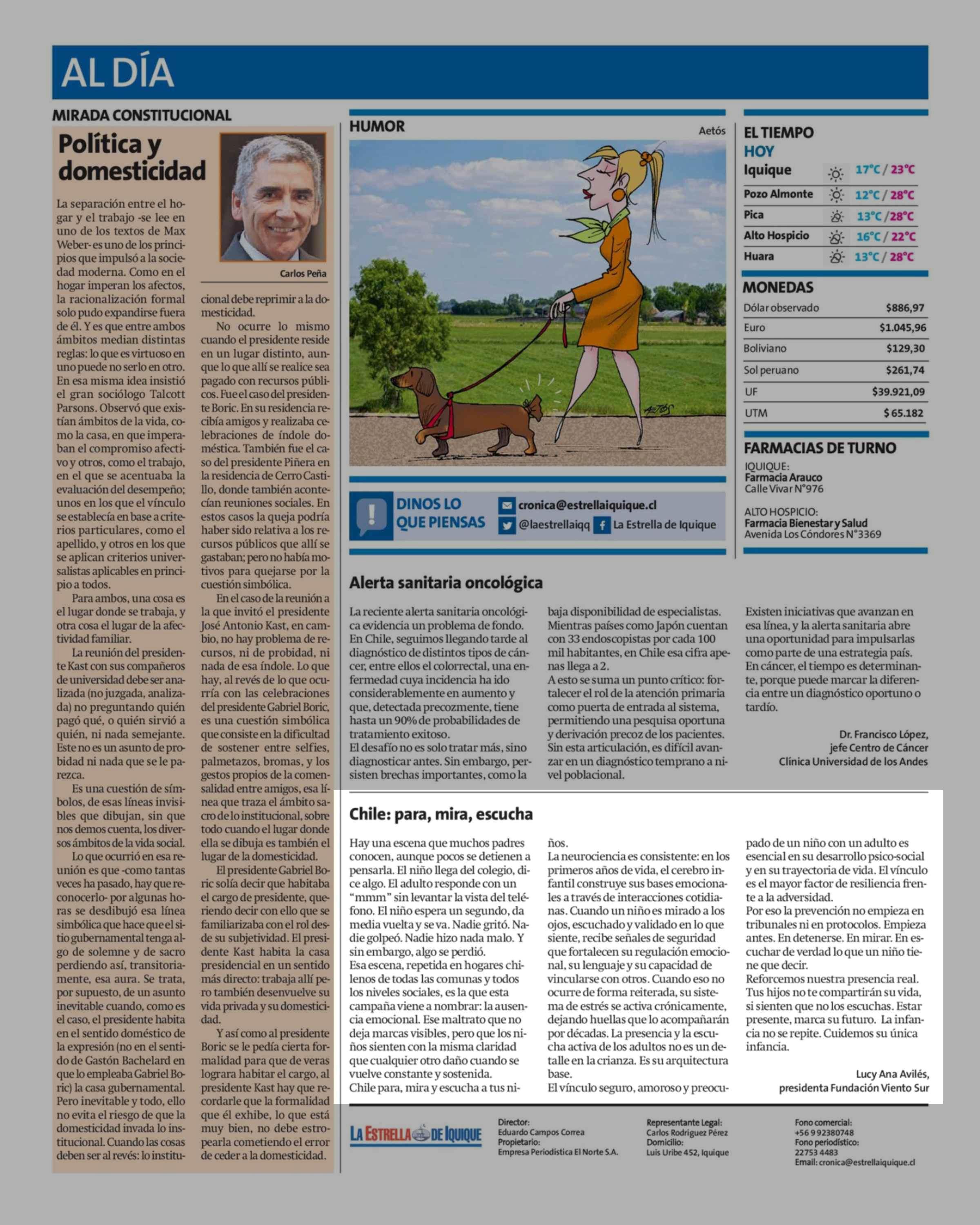 Cartas: Chile: para, mira, escucha 15-04-2026 La Estrella de Iquique |