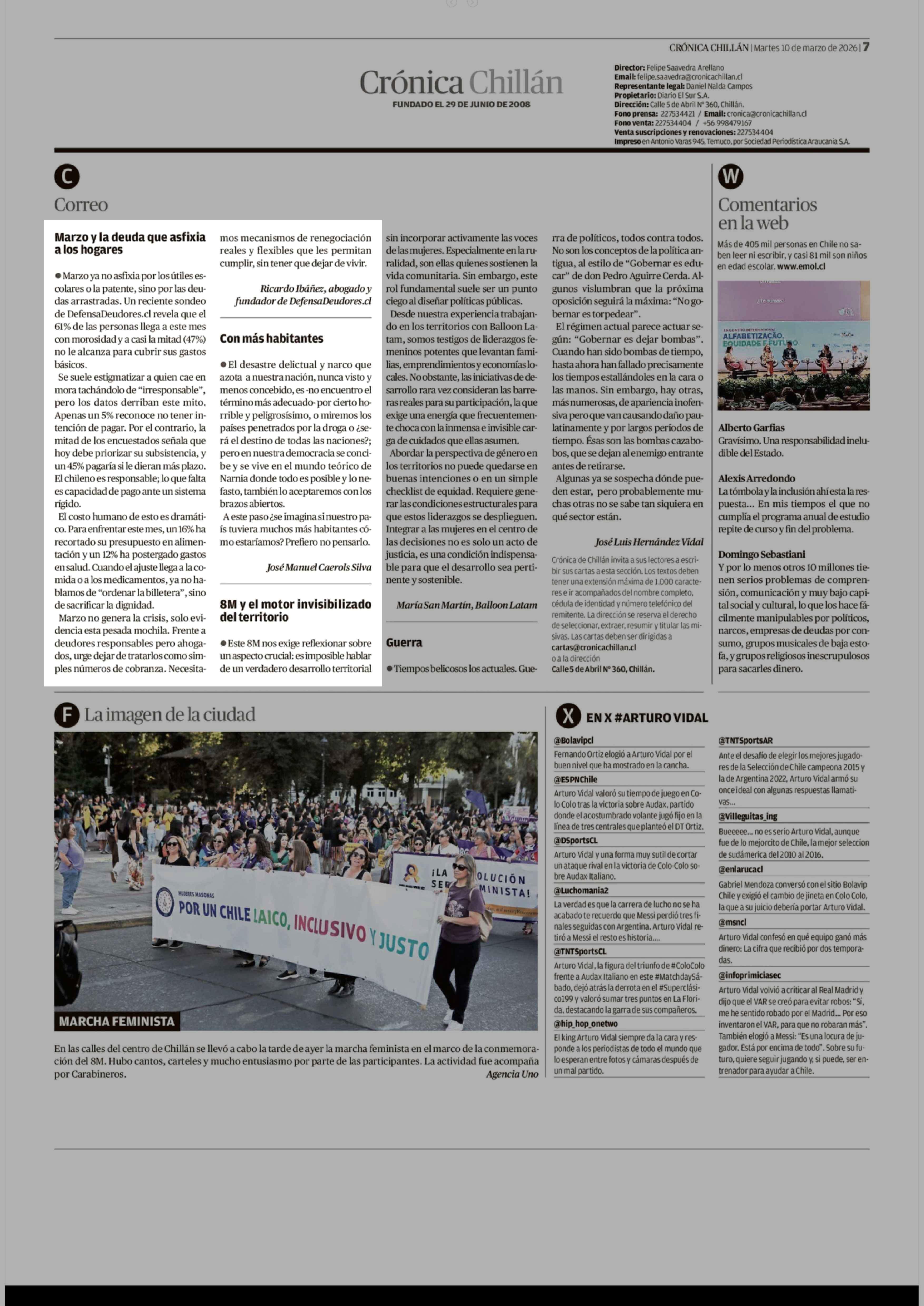 Cartas: Marzo y la deuda que asfixia a los hogares 10-03-2026 Crónica de Chillán |