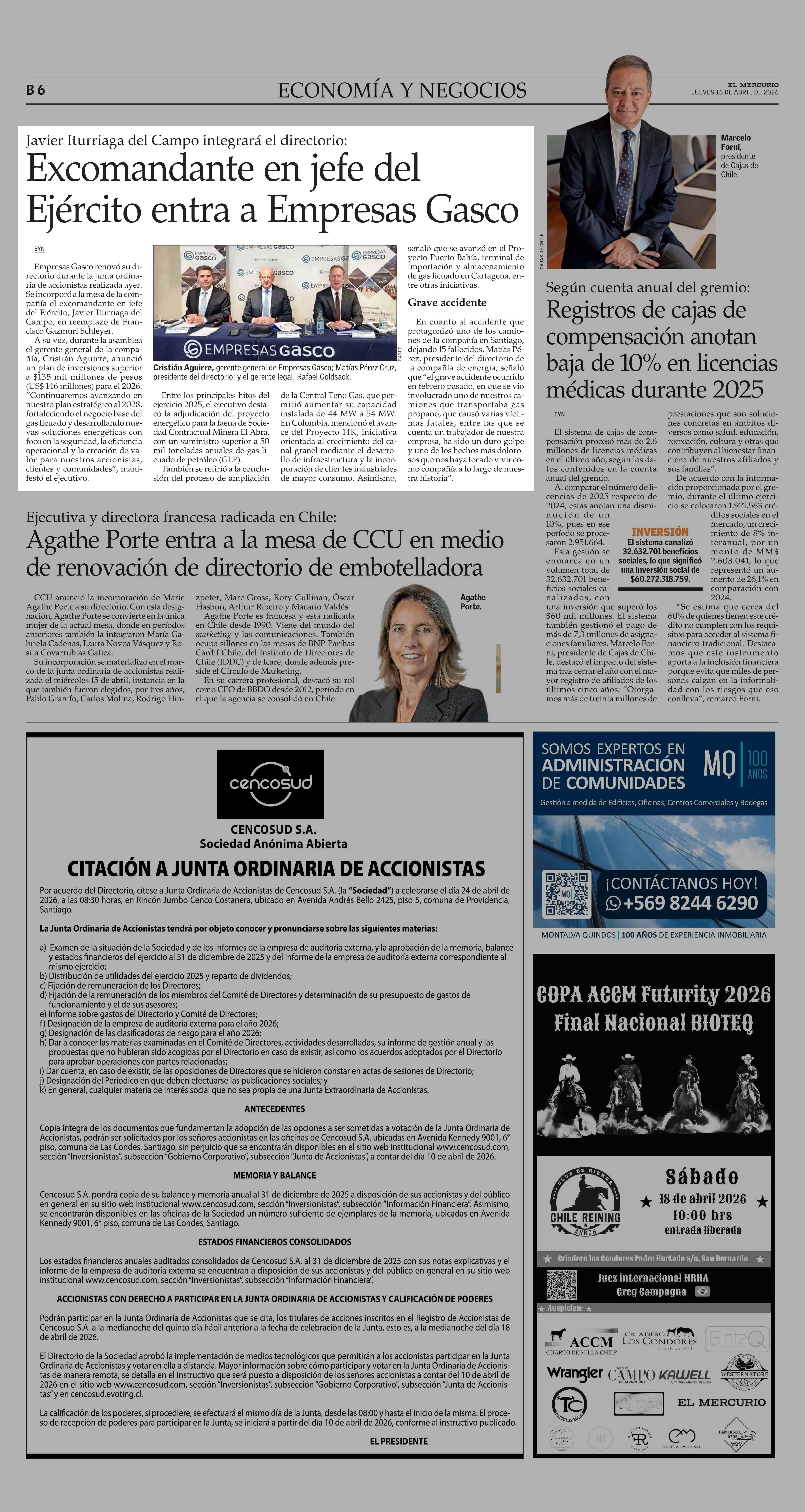 Excomandante en jefe del Ejército entra a Empresas Gasco 16-04-2026 El Mercurio |