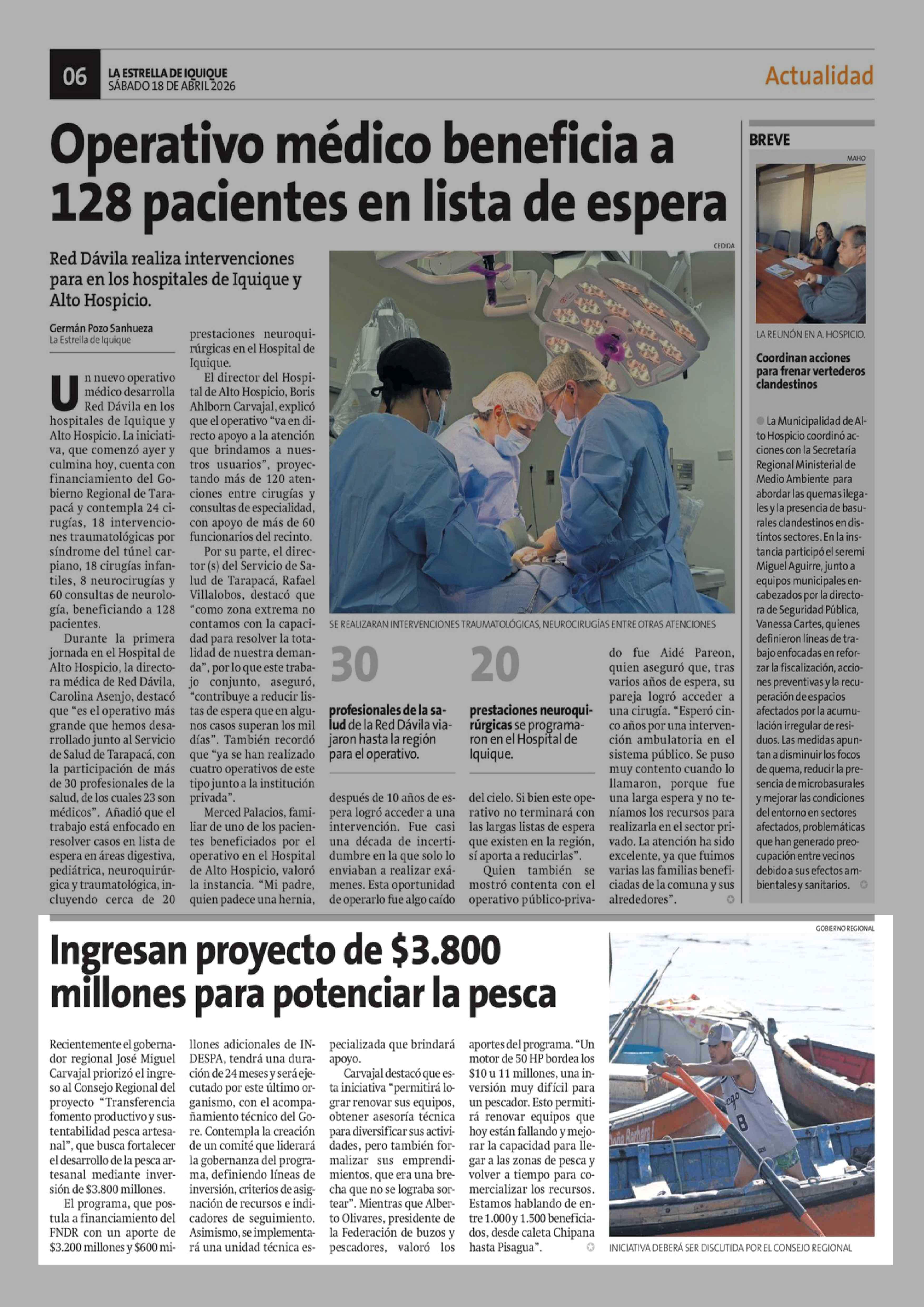 | Fecha: | 18-04-2026 | Sector: | Noticia general | Región: | Región de Tarapacá |