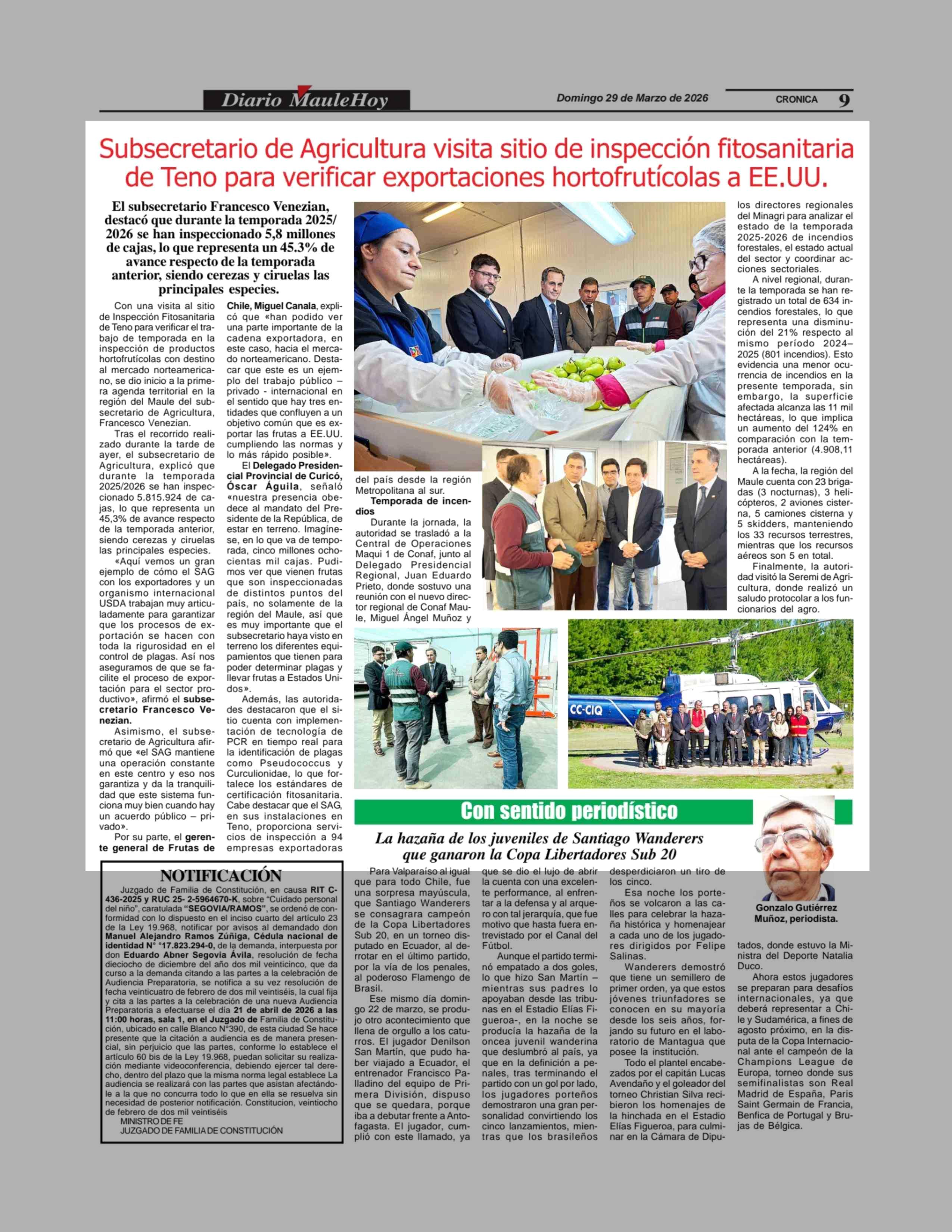 | Fecha: | 29-03-2026 | Sector: | Noticia general | Región: | Región del Maule |