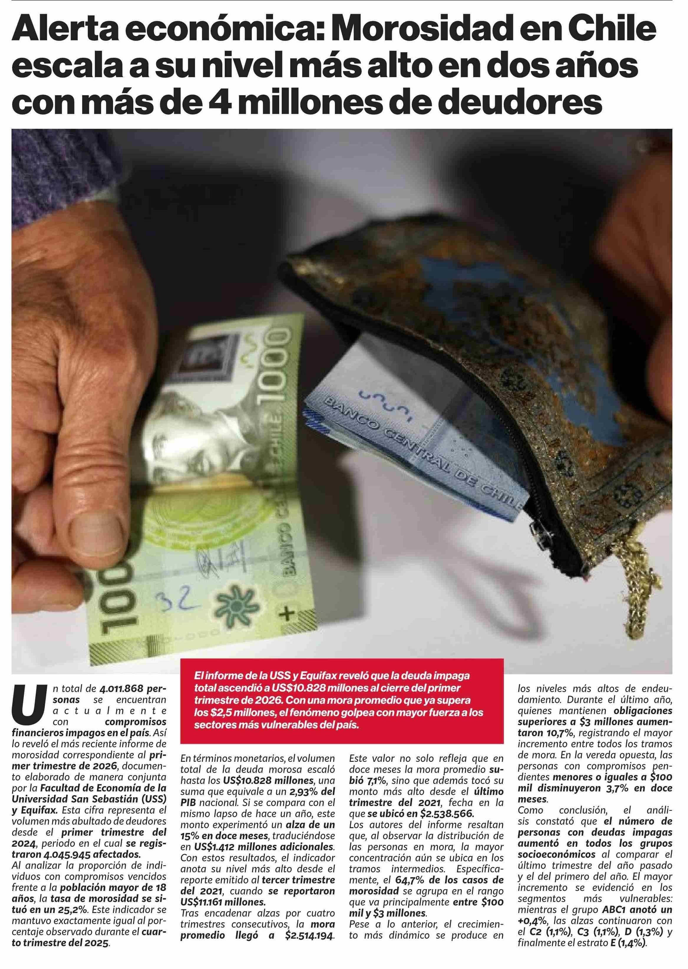 Título: Alerta económica: Morosidad en Chile escala a su nivel más alto en dos años con más de 4 millones de deudores