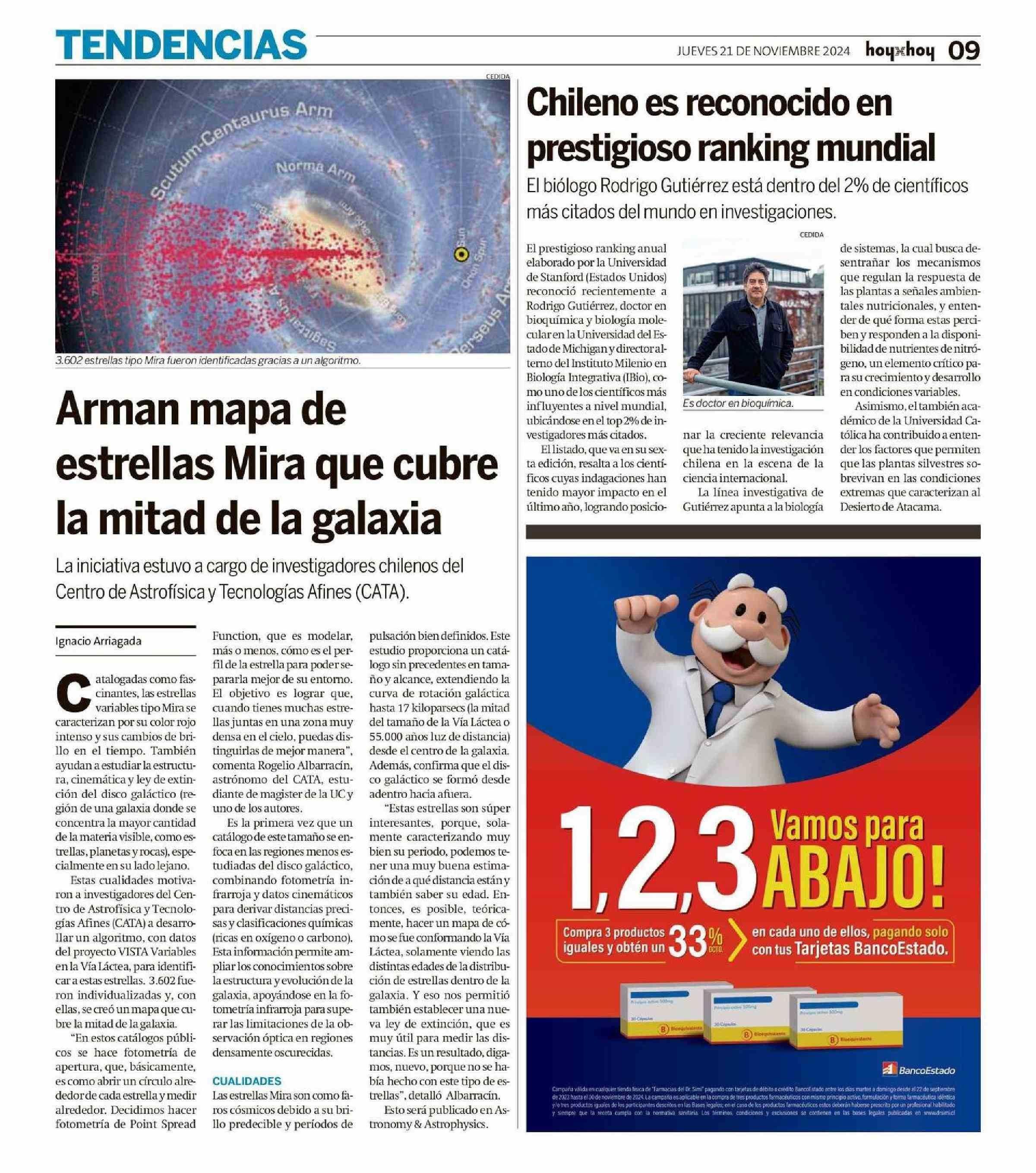 Arman mapa de estrellas Mira que cubre la mitad de la galaxia 21-11-2024 Hoy x Hoy Antofagasta |