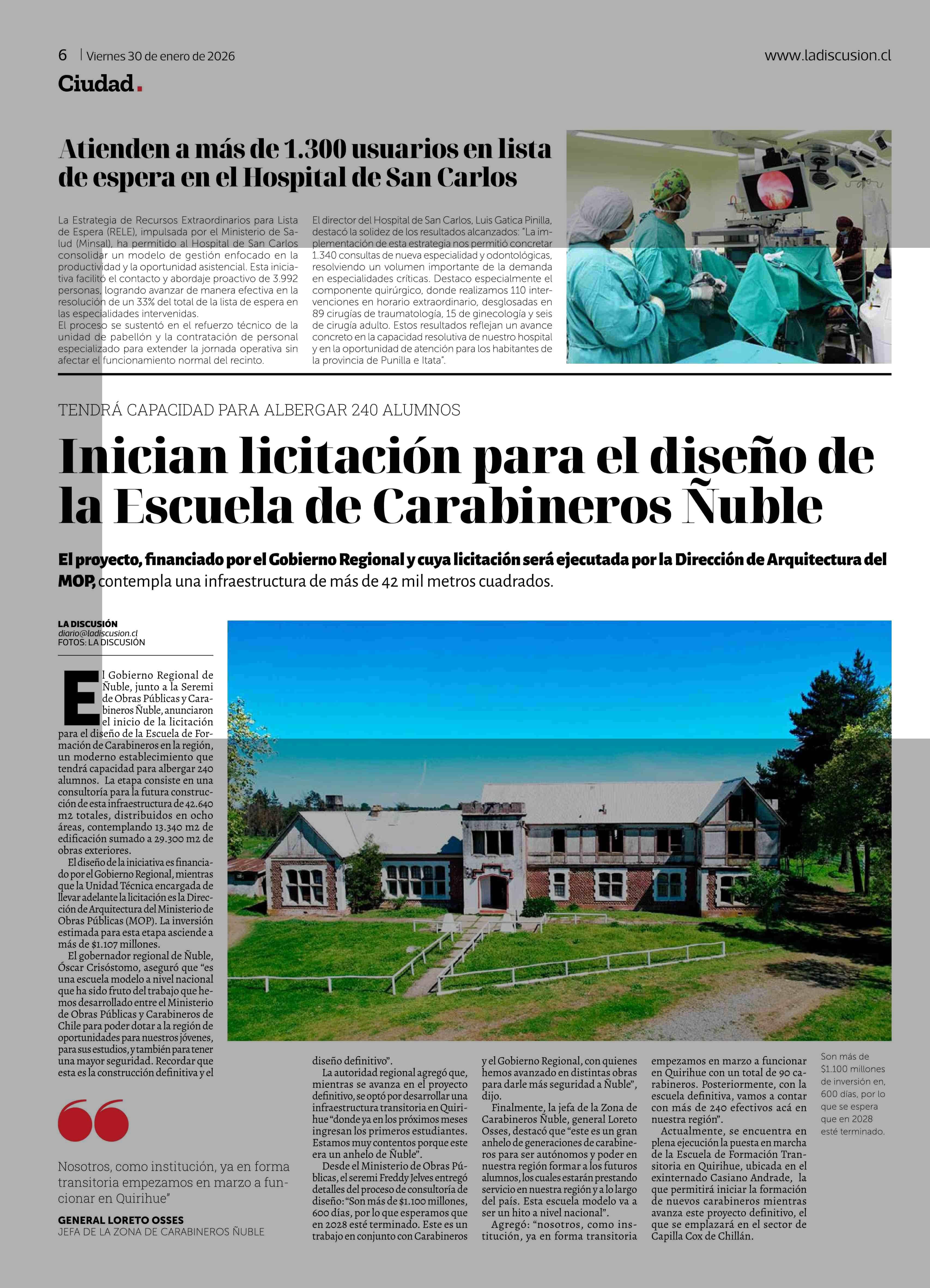| Fecha: | 30-01-2026 | Sector: | Noticia general | Región: | Región del Ñuble |