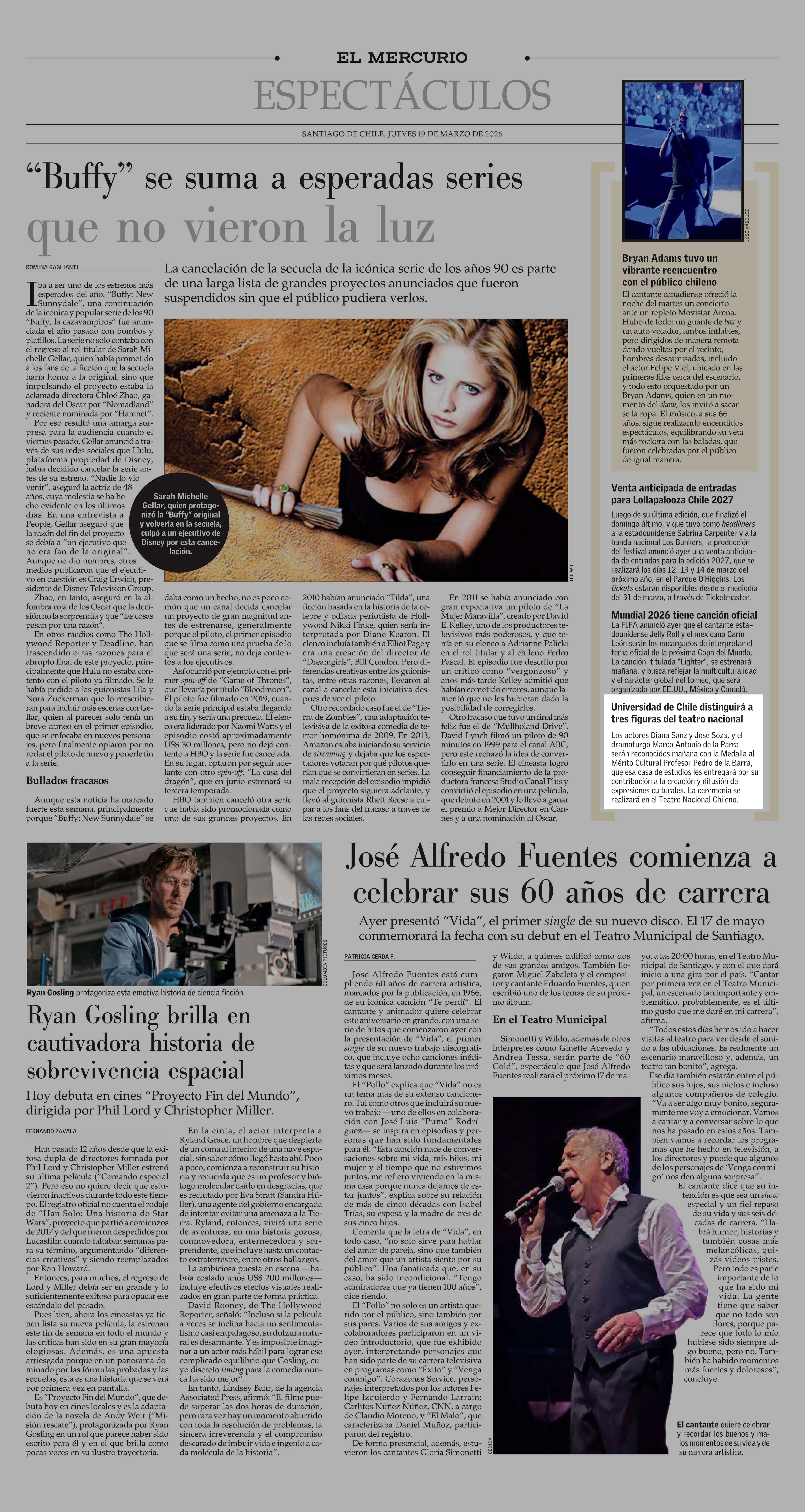 Universidad de Chile distinguirá a tres figuras del teatro nacional 19-03-2026 El Mercurio |