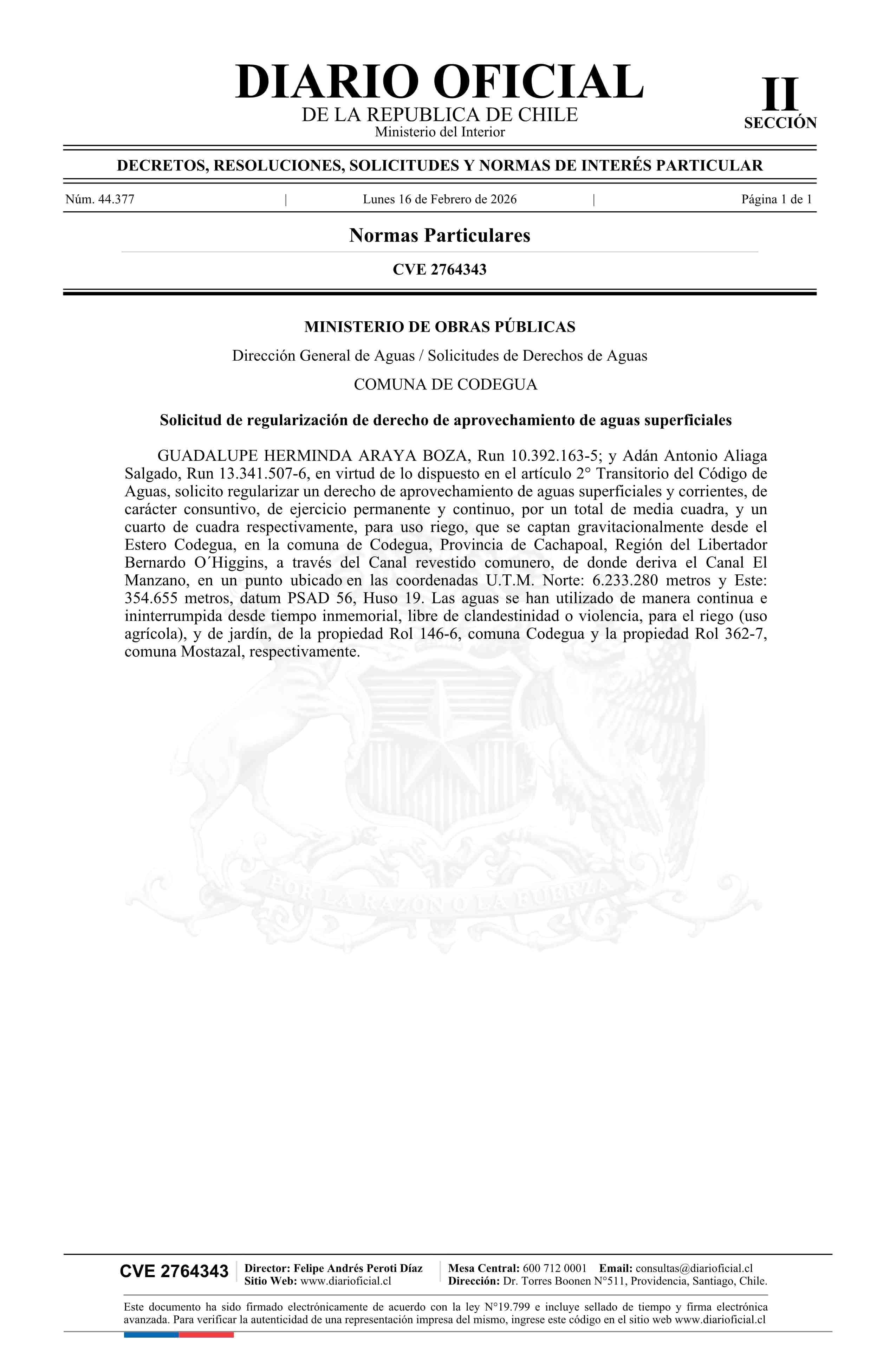 Fuente: Diario Oficial Edición Electrónica (Diario Oficial de Chile - 2 Normas Particulares) Página(s): 152