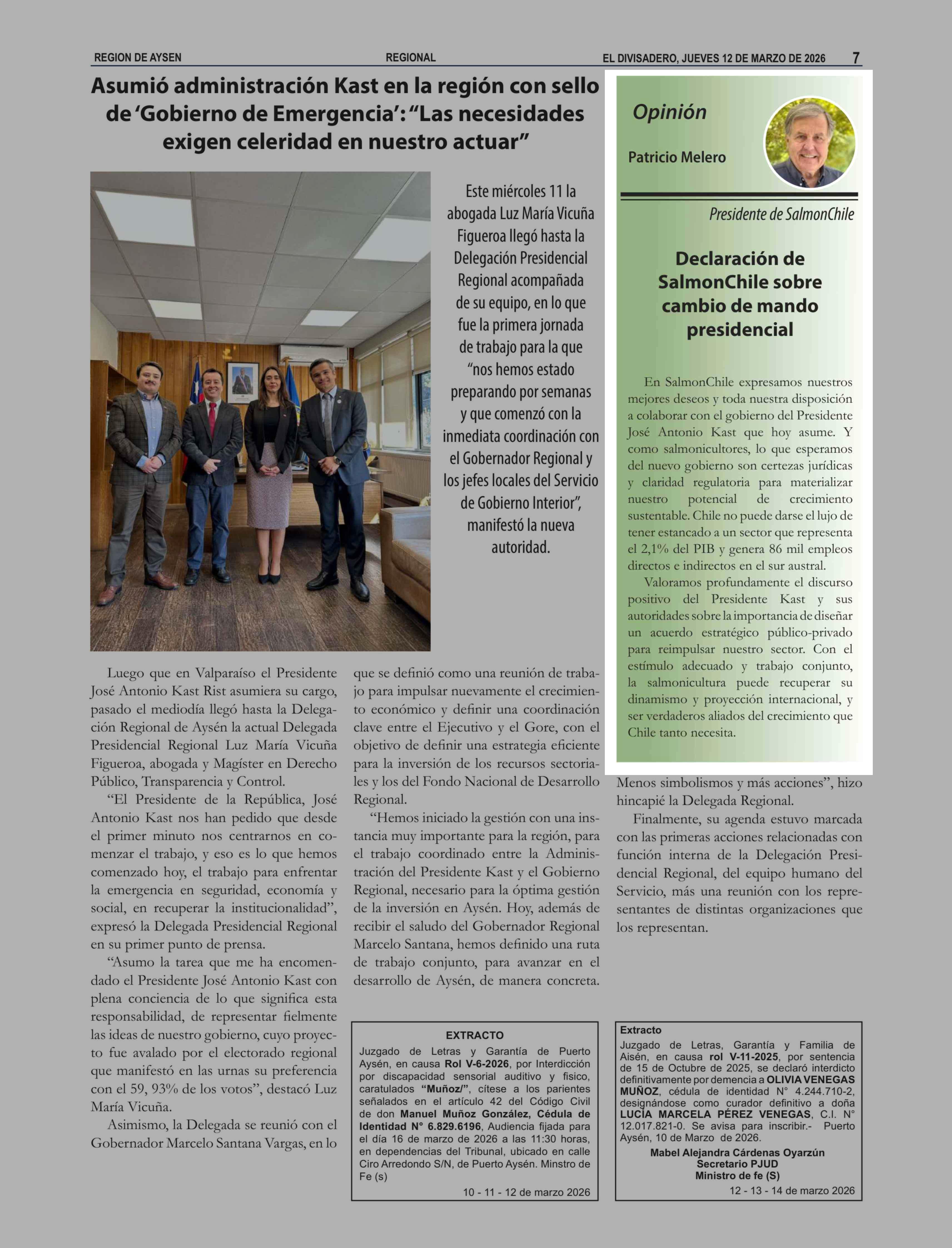 Columnas de Opinión: Declaración de SalmonChile sobre cambio de mando presidencial 12-03-2026 El Divisadero |