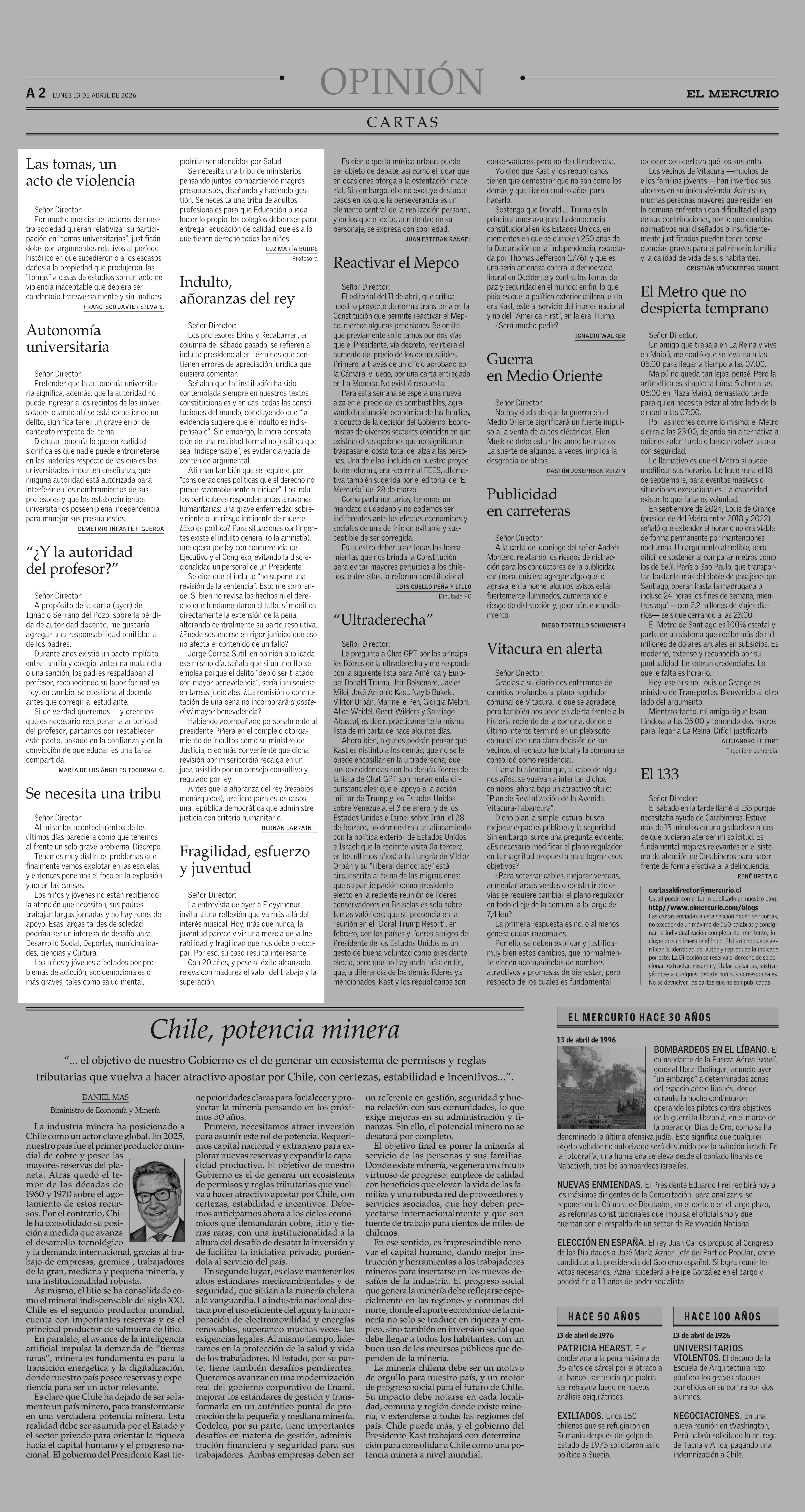 Cartas: Se necesita una tribu 13-04-2026 El Mercurio |