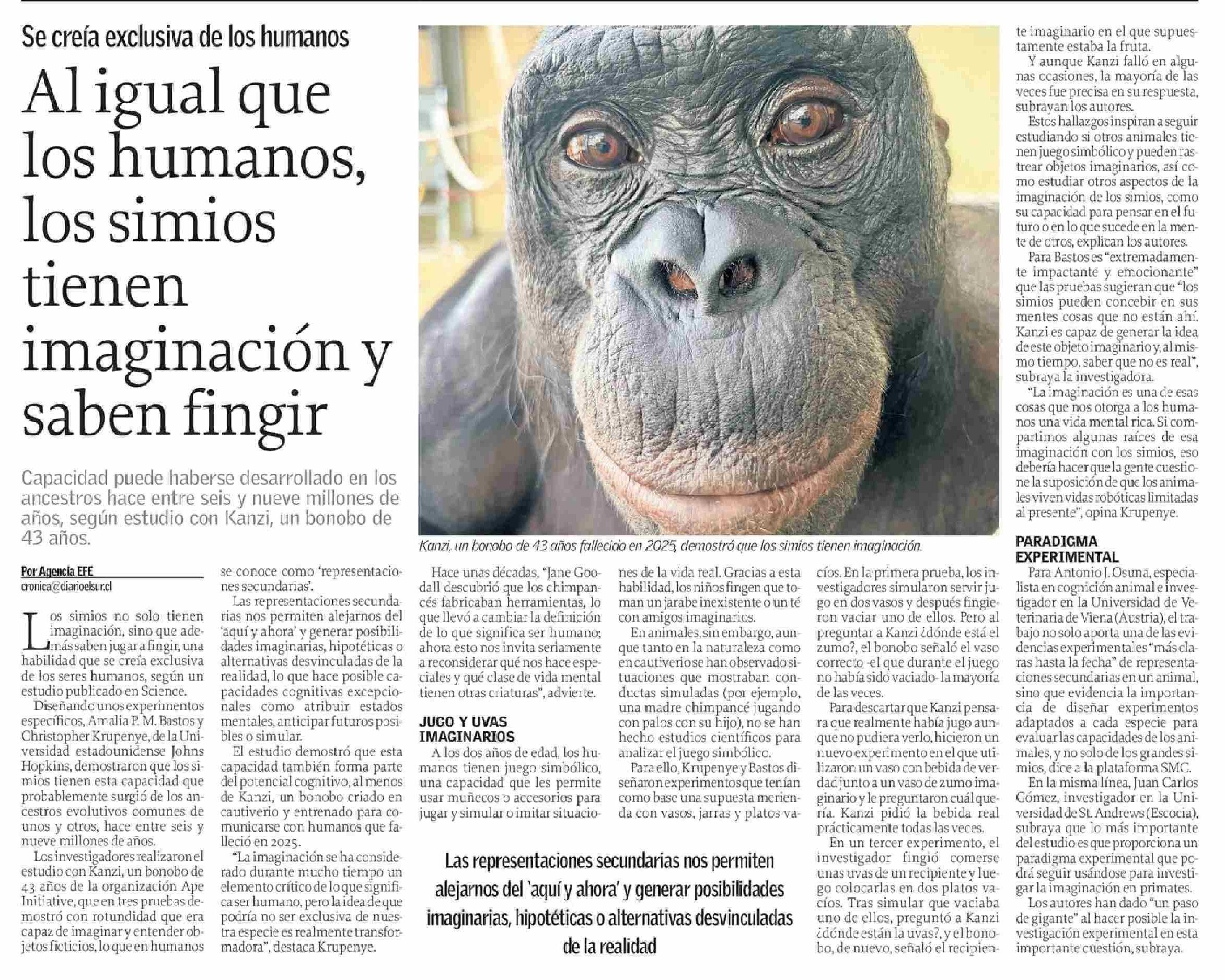 Título: Al igual que los humanos, los simios tienen imaginación y saben fingir