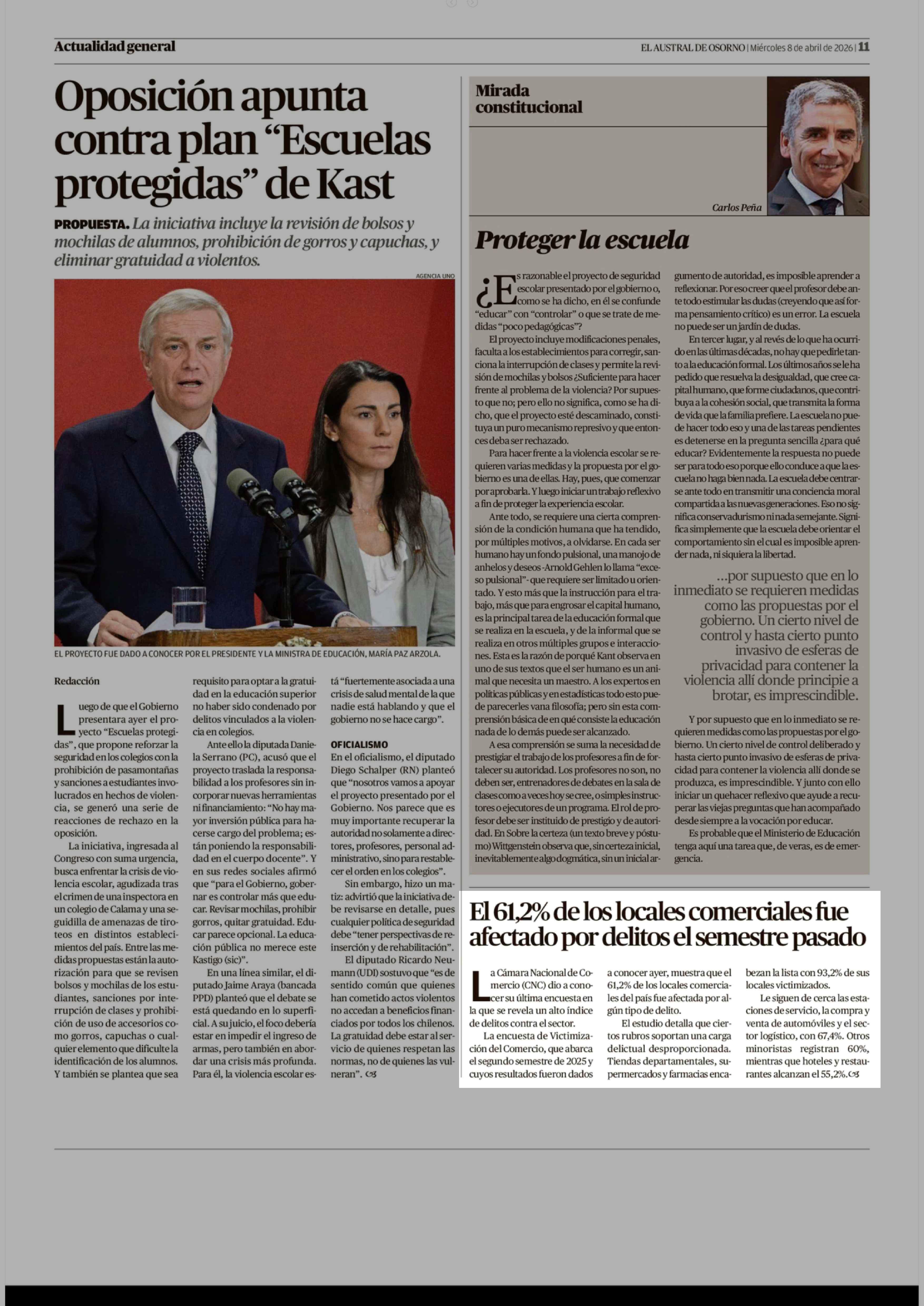 El 61,2% de los locales comerciales fue afectado por delitos el semestre pasado 08-04-2026 El Austral de Osorno |
