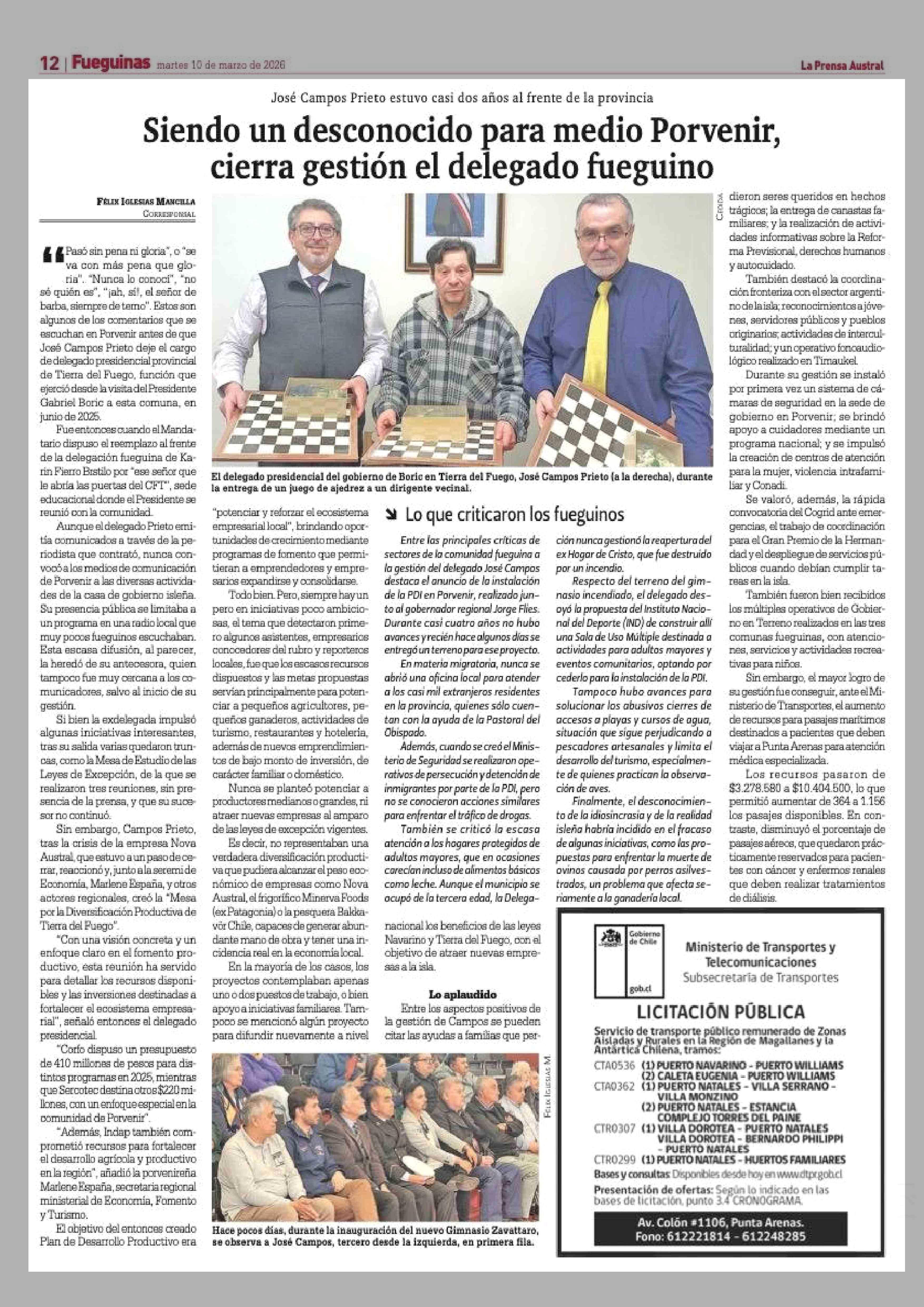 Fuente: La Prensa Austral (La Prensa Austral) Página(s): 12