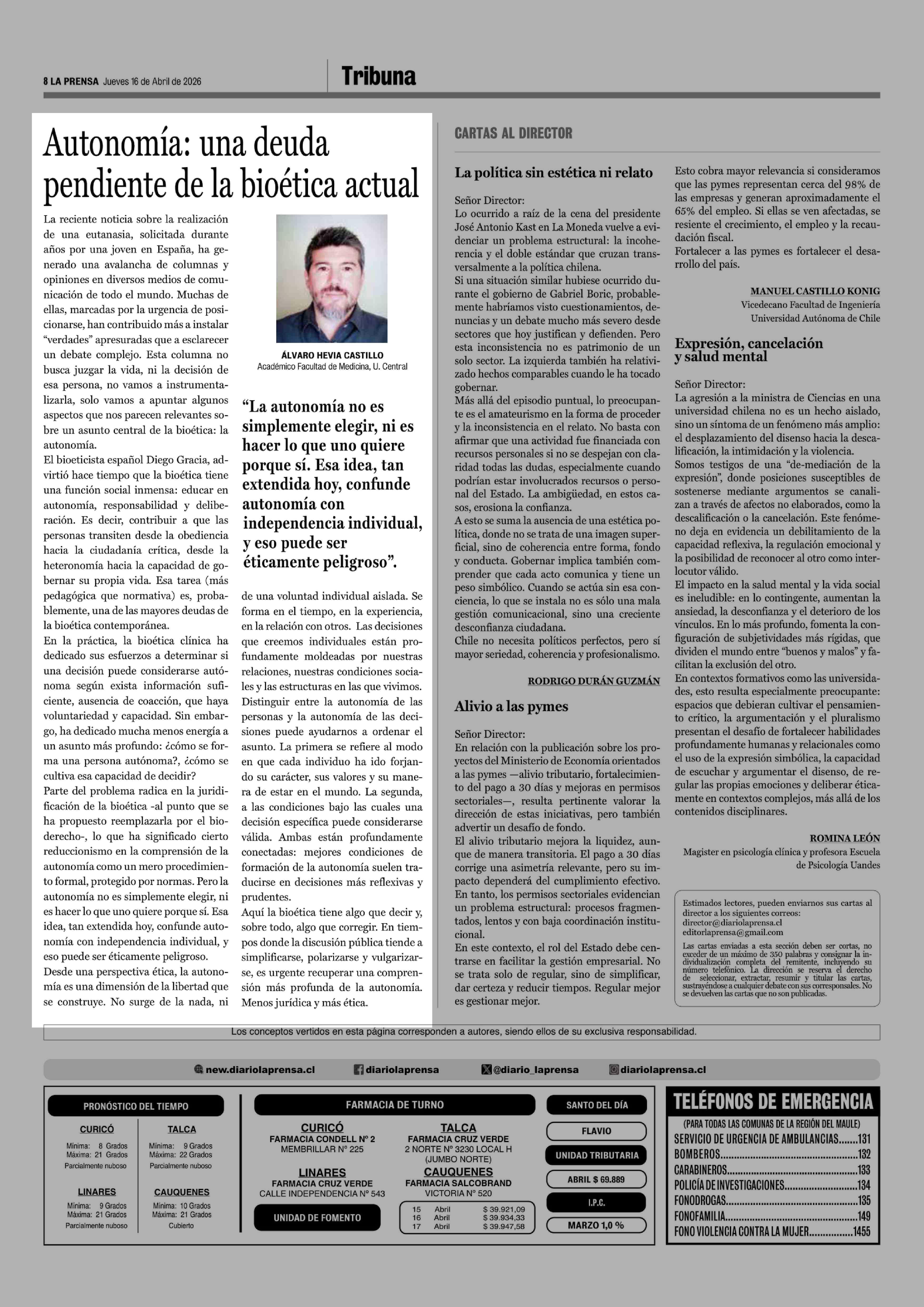 16-04-2026 La Prensa de Curicó