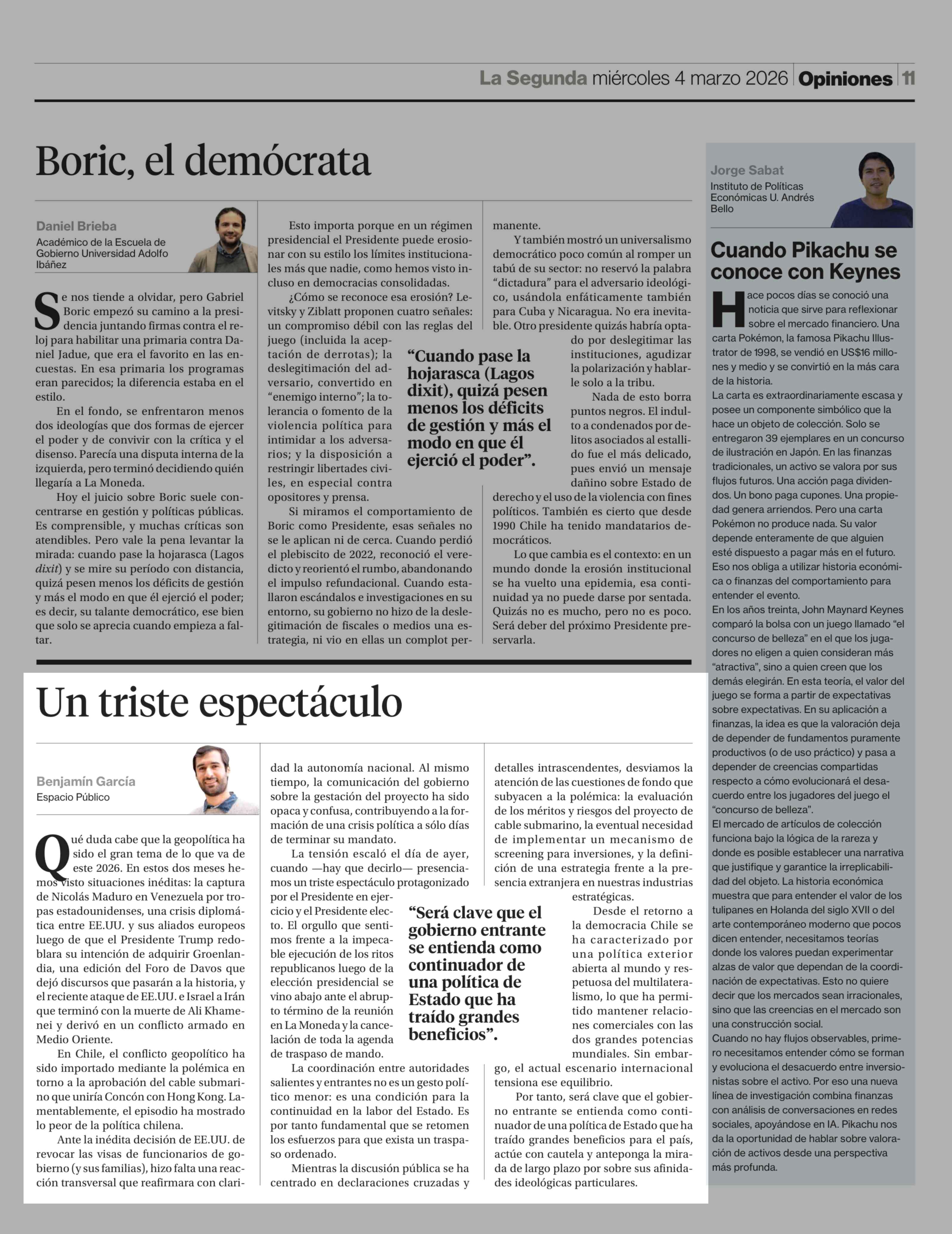 Columnas de Opinión: Un triste espectáculo 04-03-2026 La Segunda |