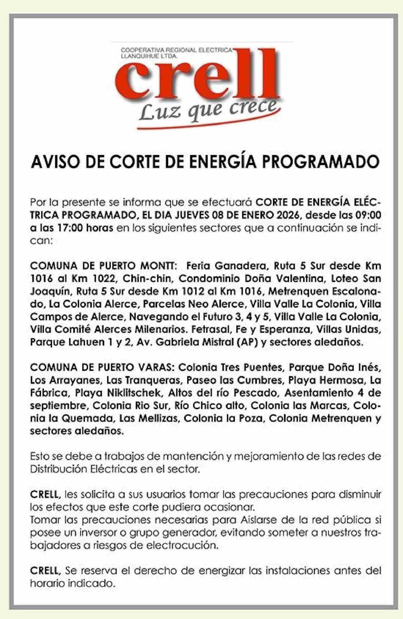 | Fecha: | 08-01-2026 | Sector: | Noticia general | Región: | Región de Los Lagos |
