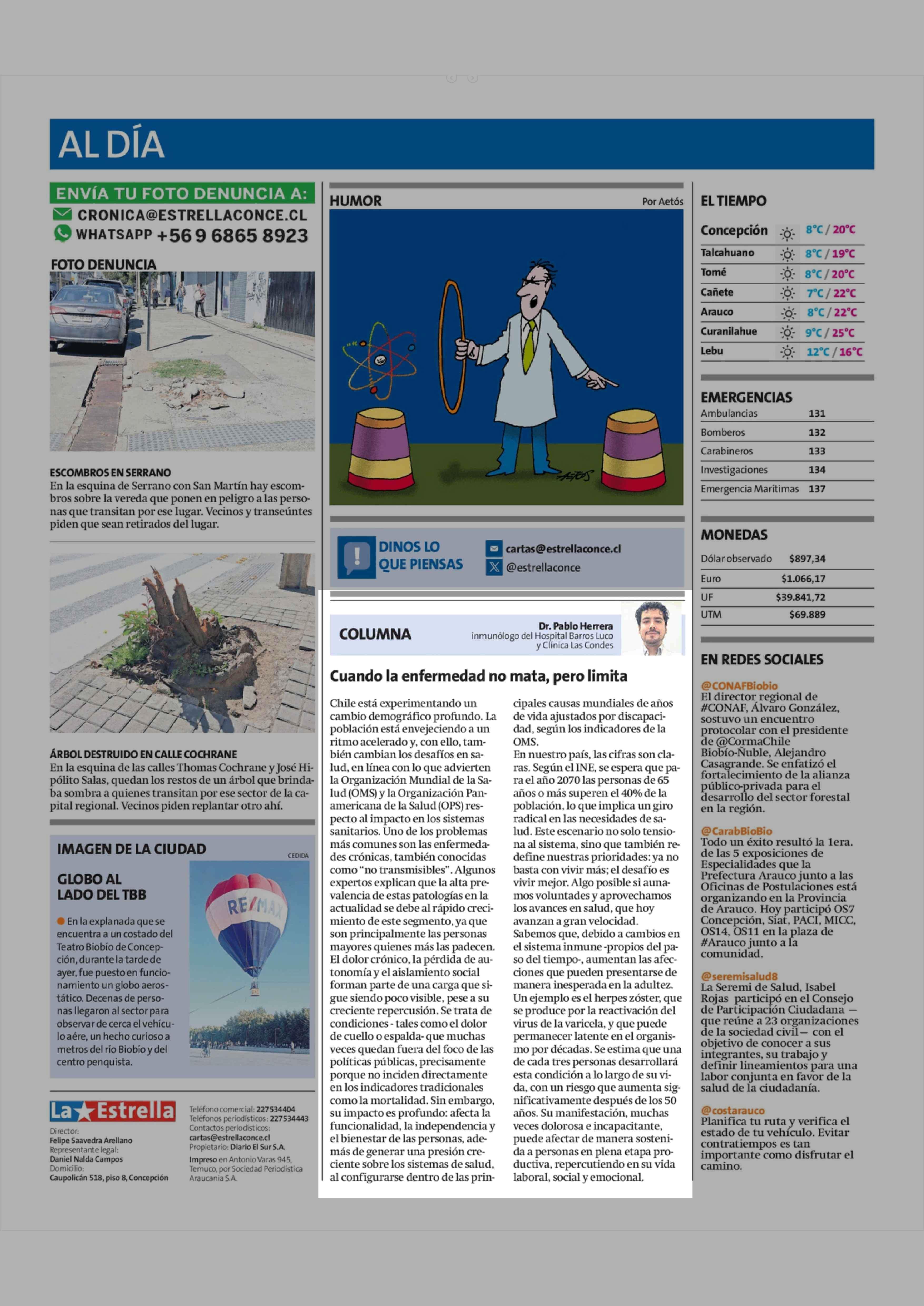 Columnas de Opinión: Cuando la enfermedad no mata, pero limita 09-04-2026 La Estrella de Concepción |