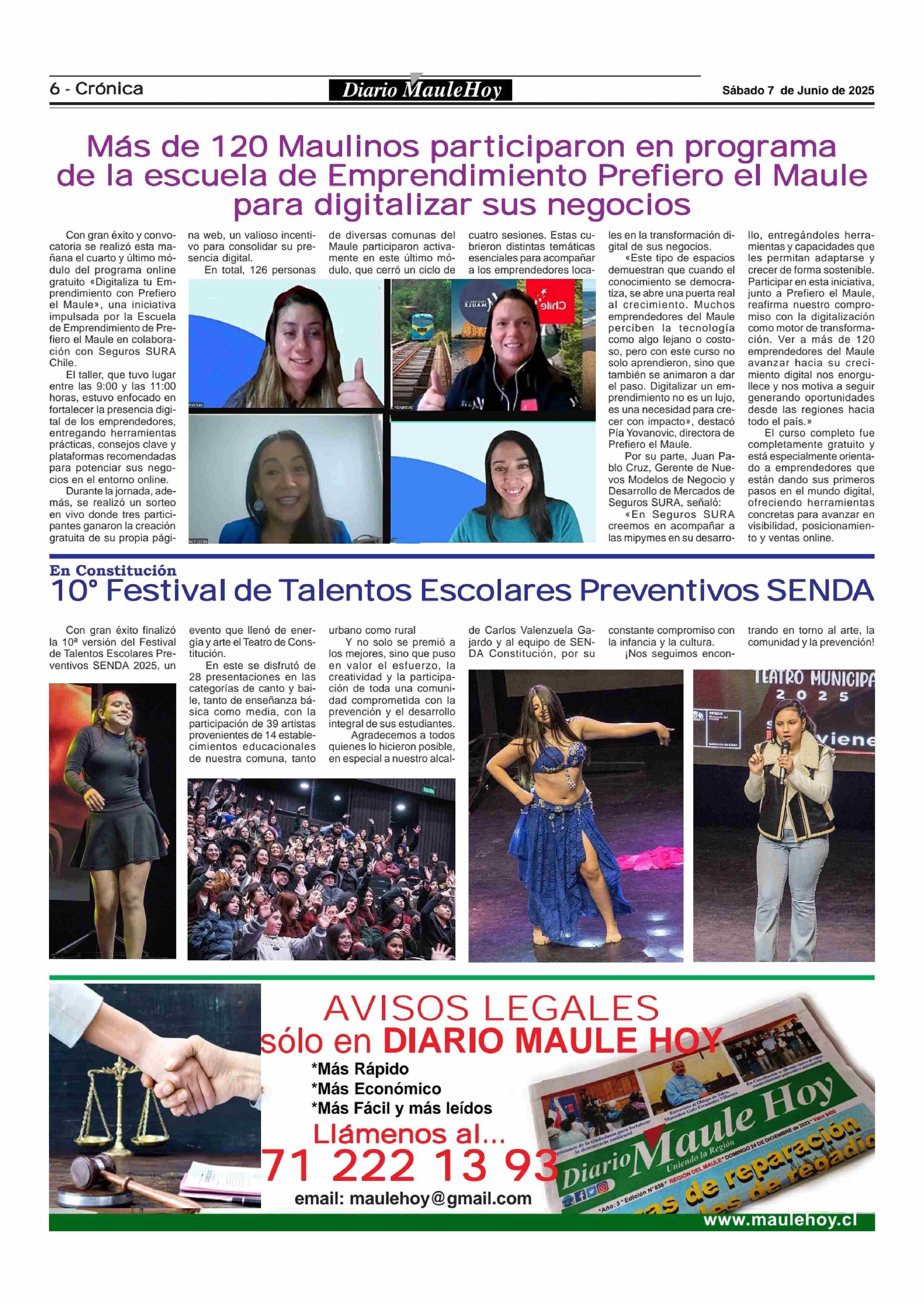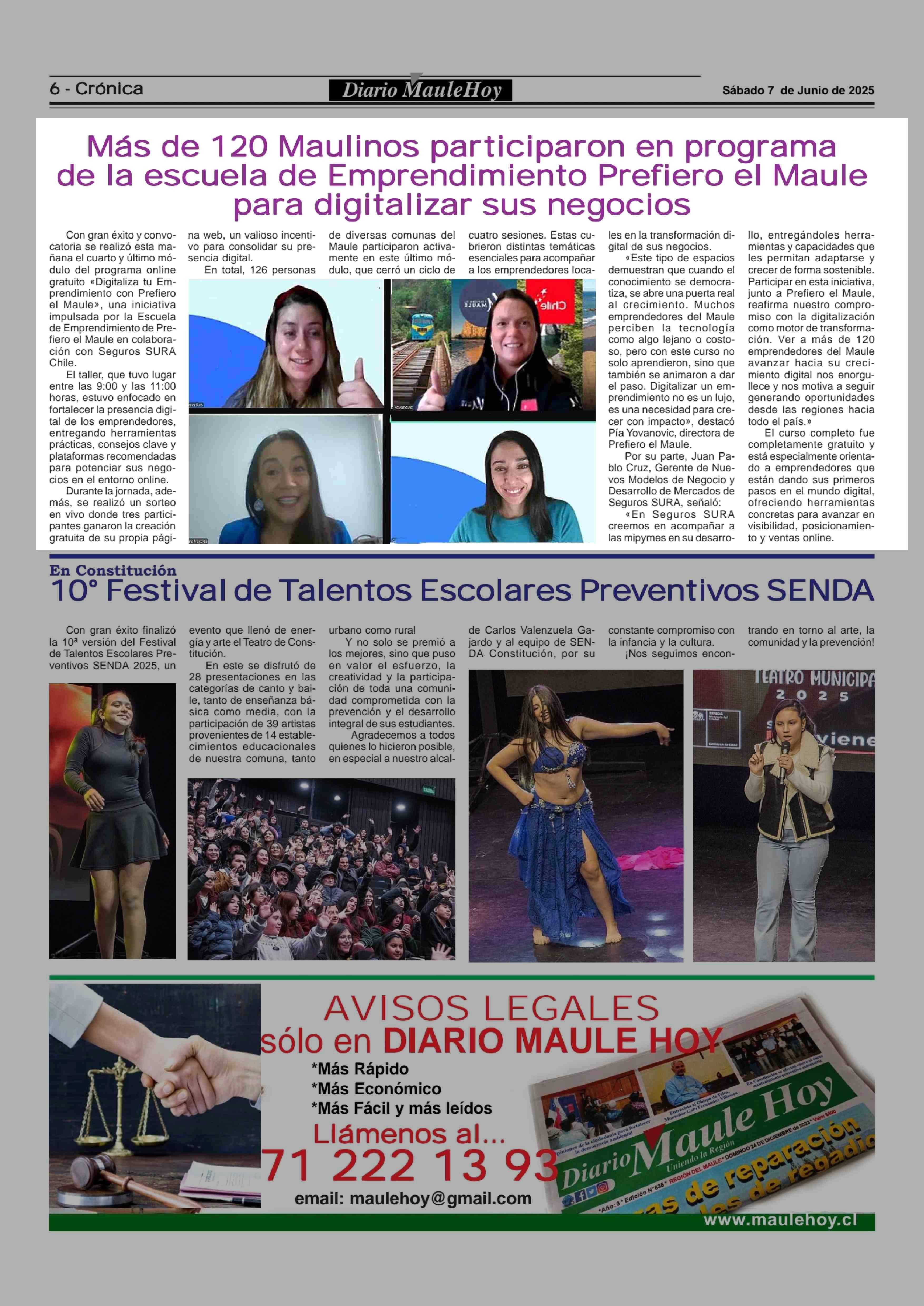 Más de 120 Maulinos participaron en programa de la escuela de Emprendimiento Prefiero el Maule para digitalizar sus negocios 07-06-2025 Maule Hoy |