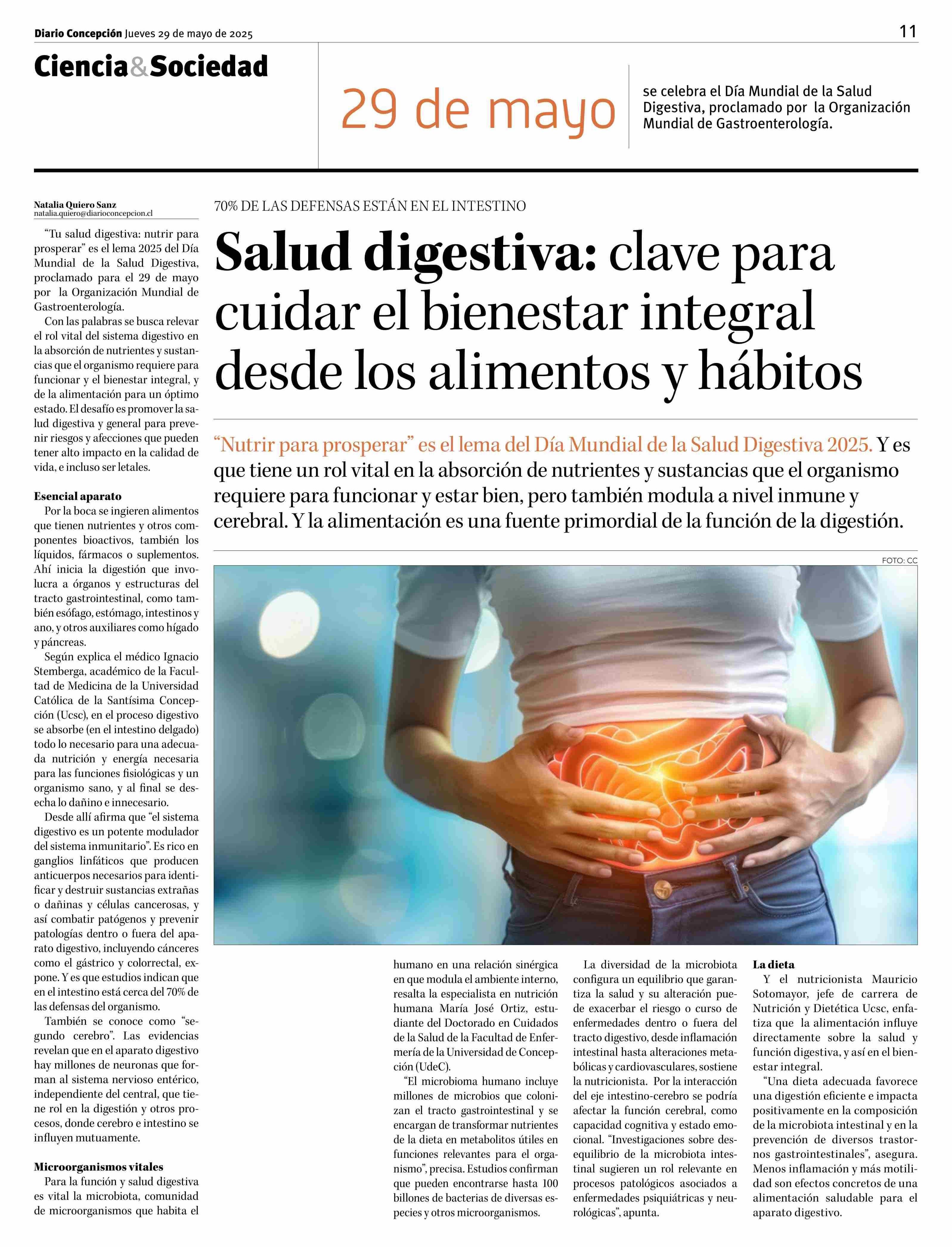 Salud digestiva: clave para cuidar el bienestar integral desde los alimentos y hábitos 29-05-2025 Diario Concepción |