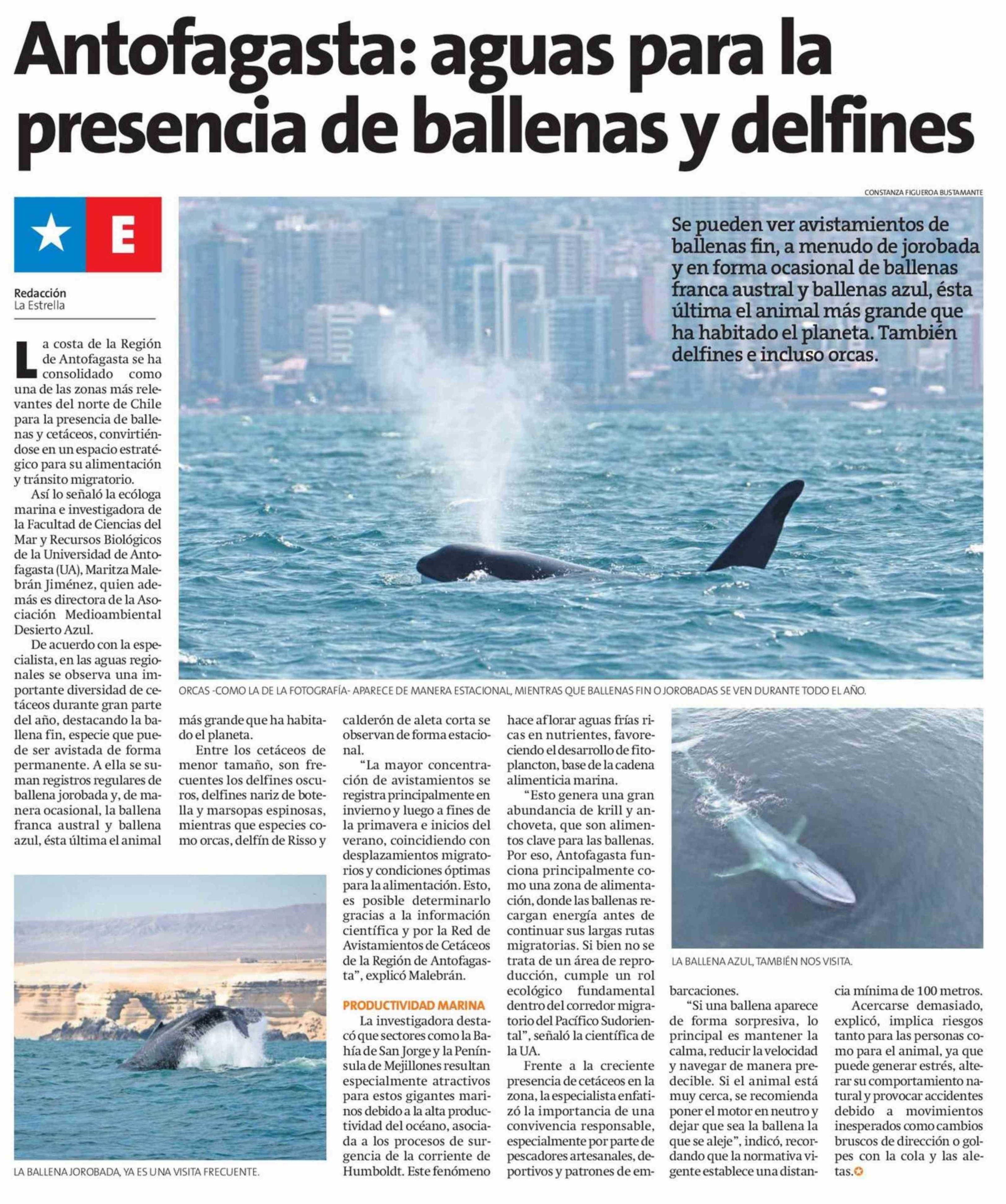 Antofagasta: aguas para la presencia de ballenas y delfines 26-01-2026 La Estrella de Antofagasta |