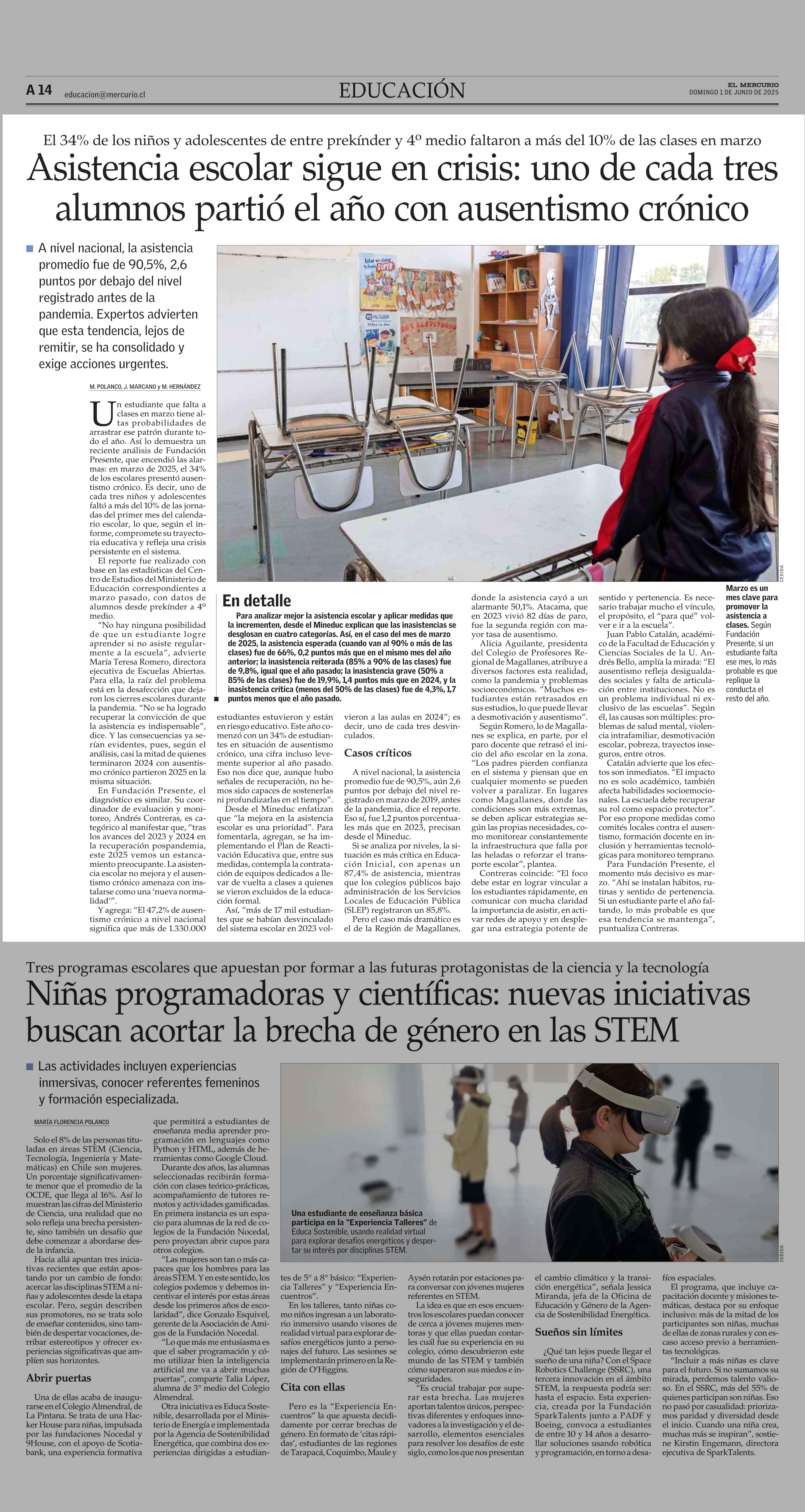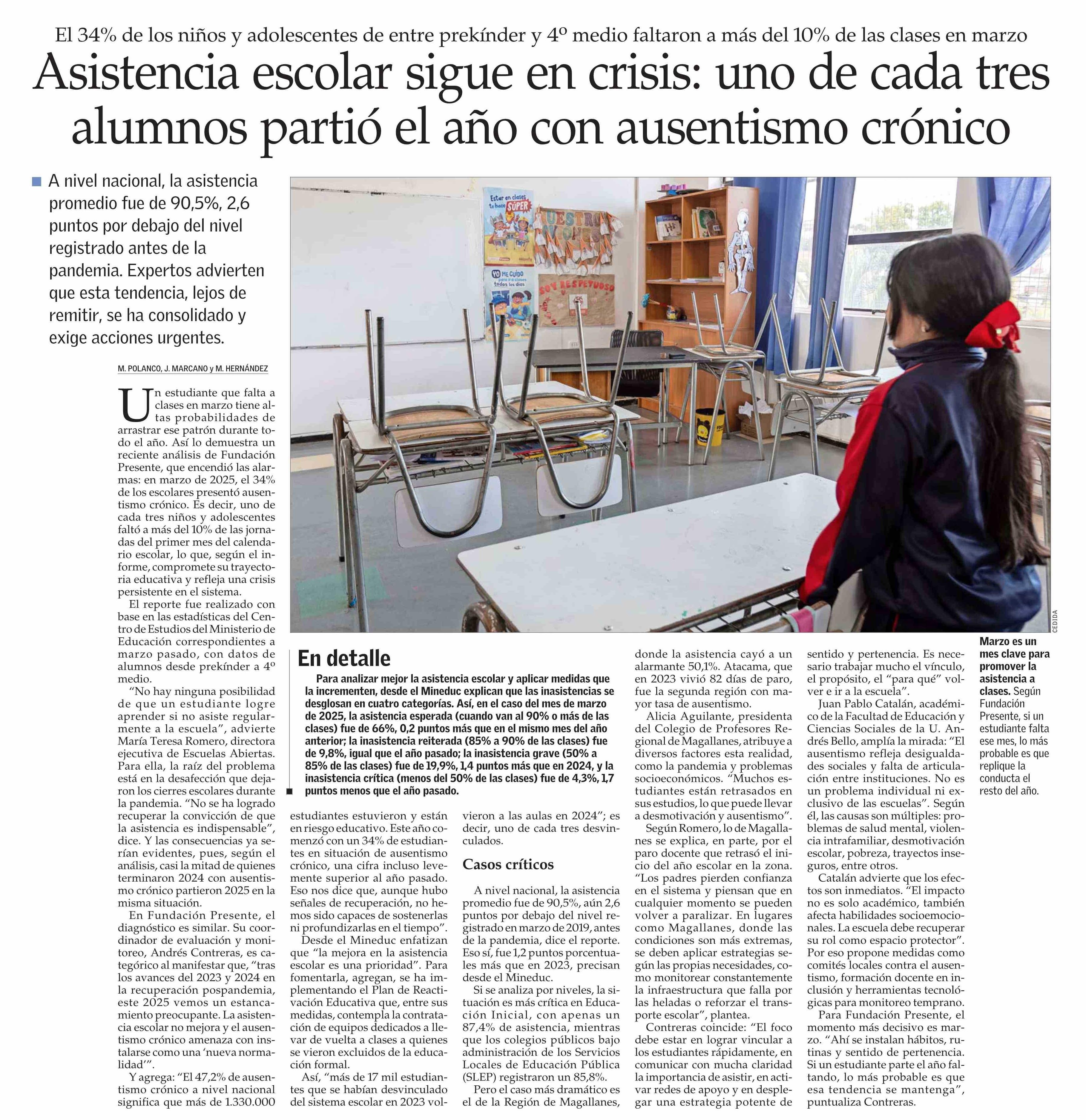 Asistencia escolar sigue en crisis: uno de cada tres alumnos partió el año con ausentismo crónico 01-06-2025 El Mercurio |