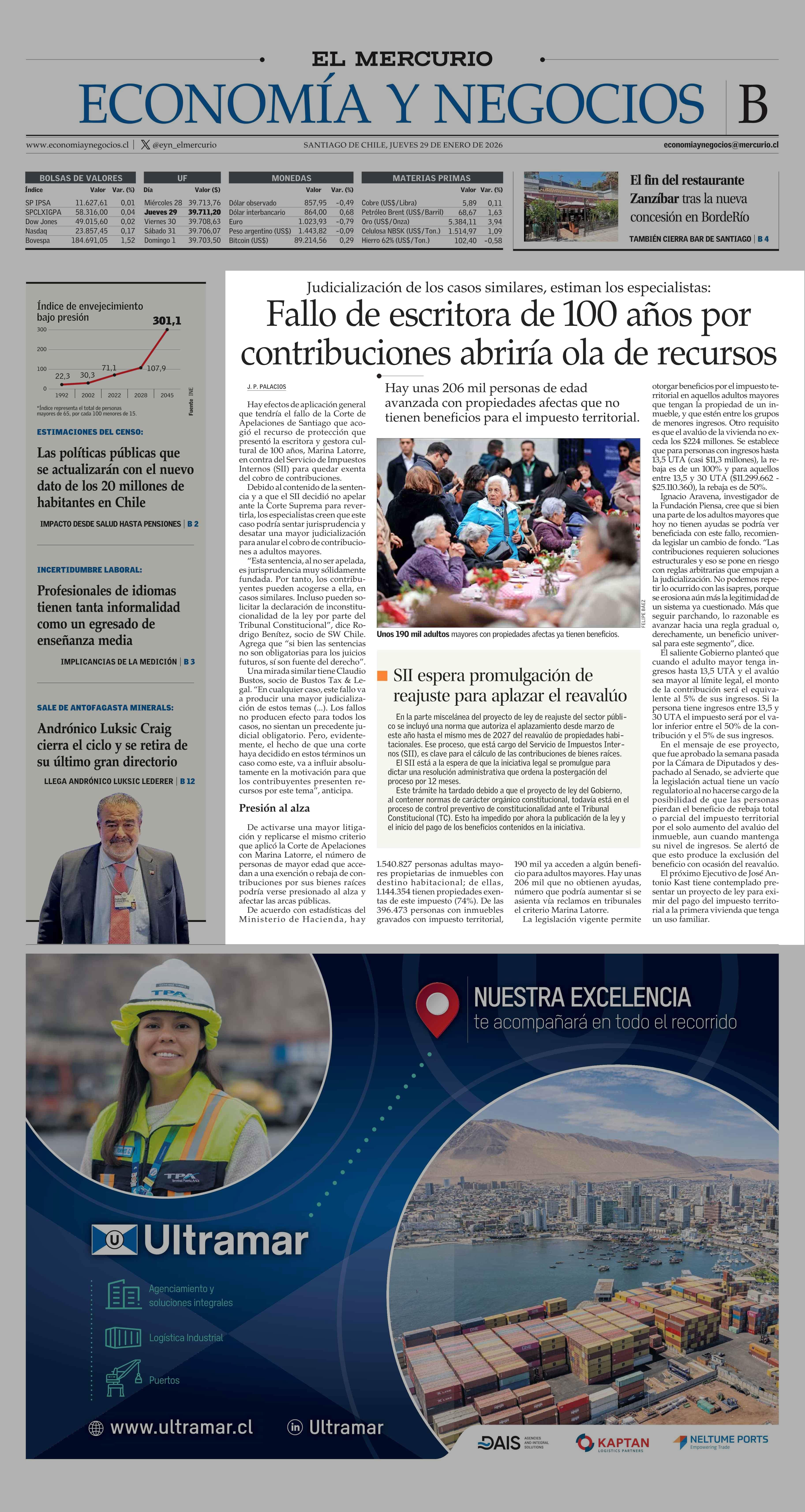 Fallo de escritora de 100 años por contribuciones abriría ola de recursos 29-01-2026 El Mercurio |