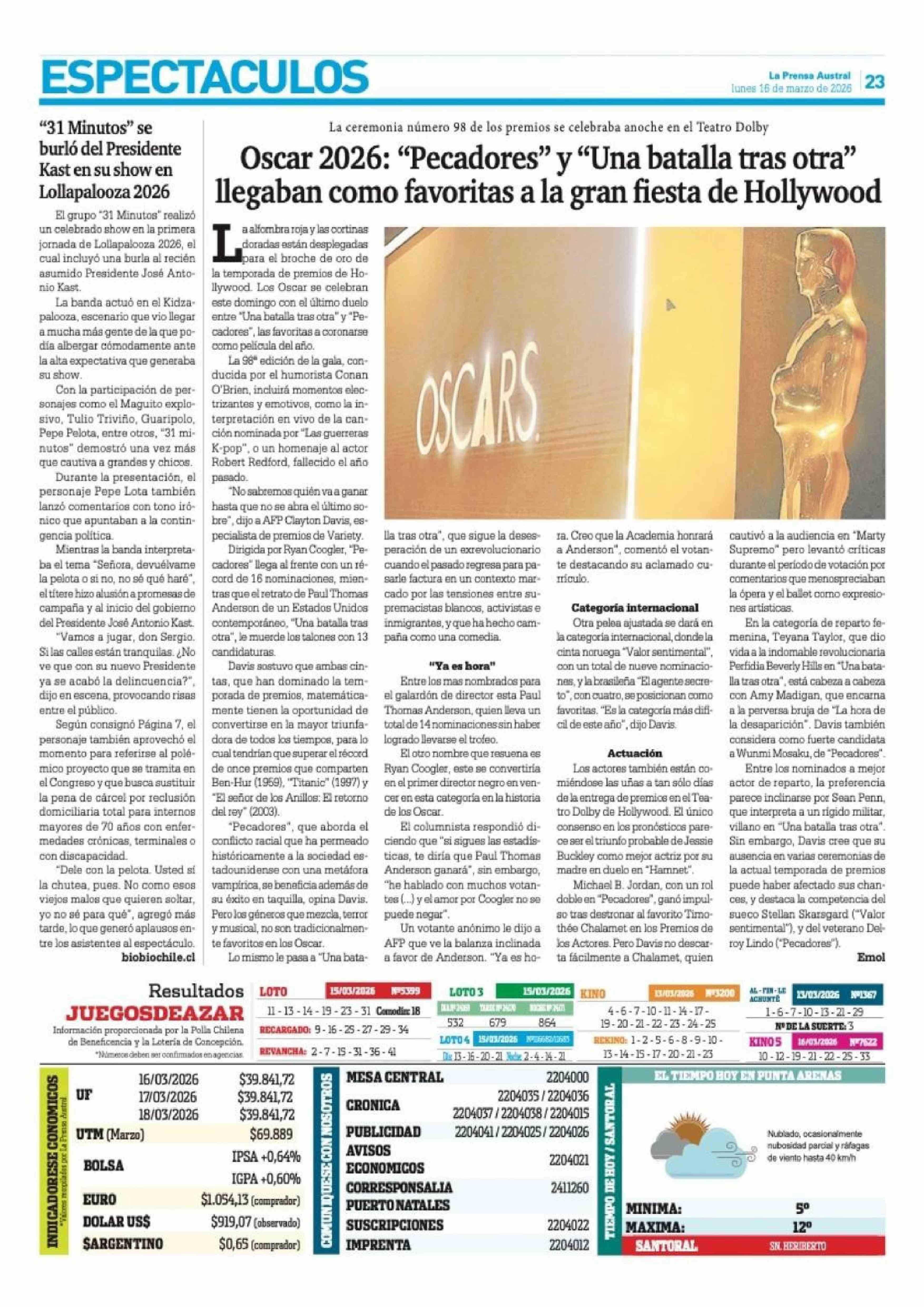 | Fecha: | 16-03-2026 | Sector: | Noticia general | Región: | Región de Magallanes y de la Antártica Chilena |