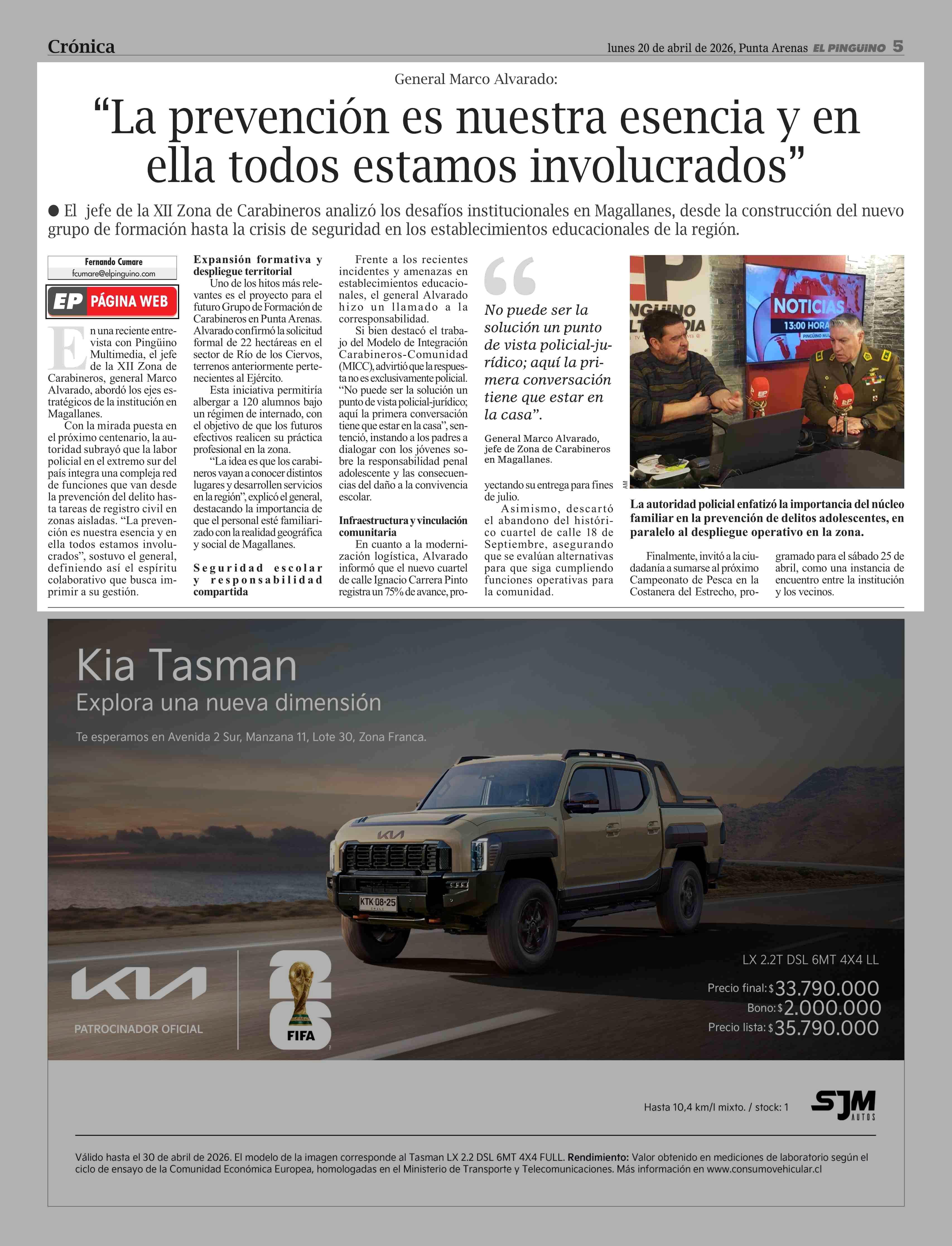 | Fecha: | 20-04-2026 | Sector: | Noticia general | Región: | Región de Magallanes y de la Antártica Chilena |