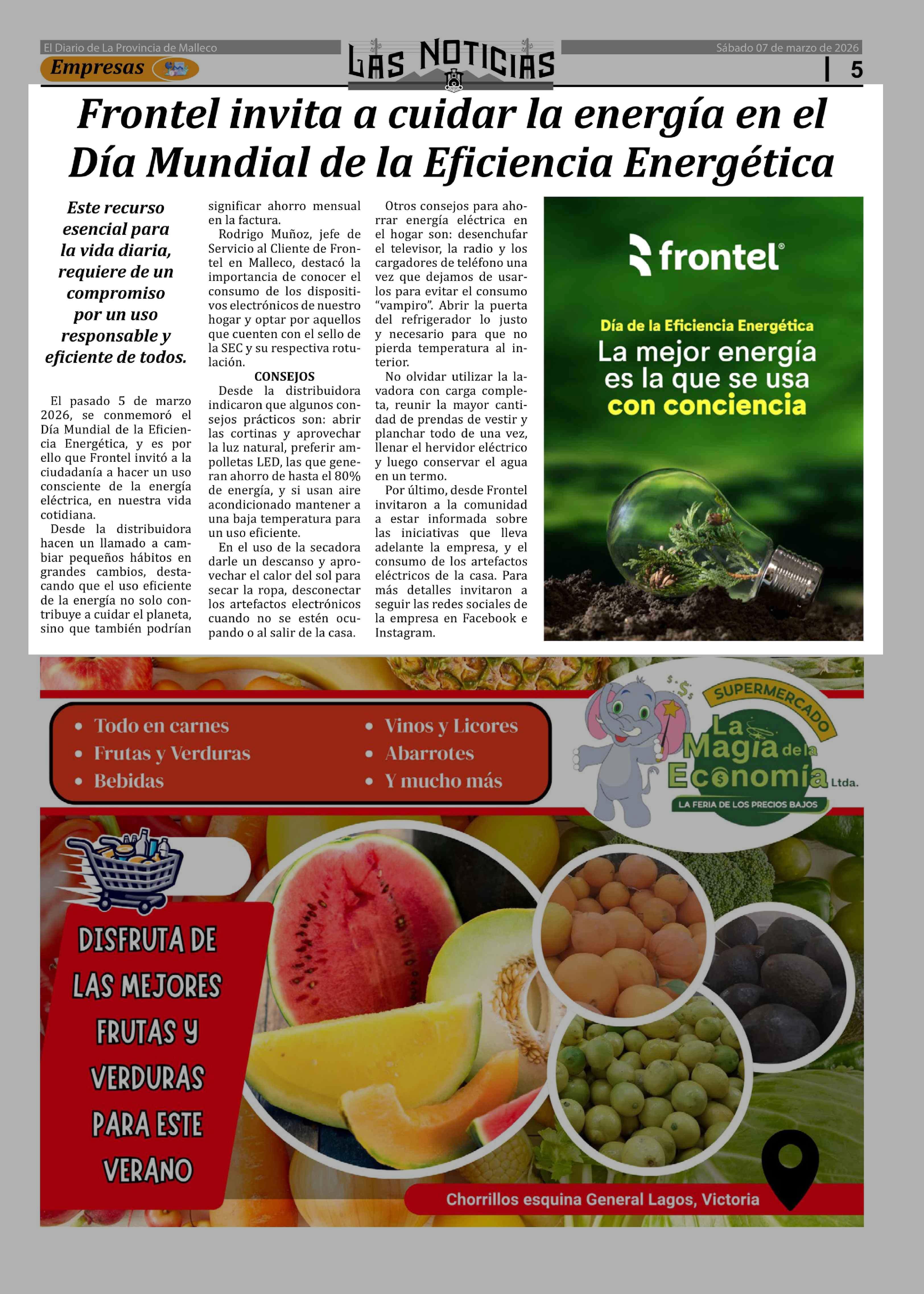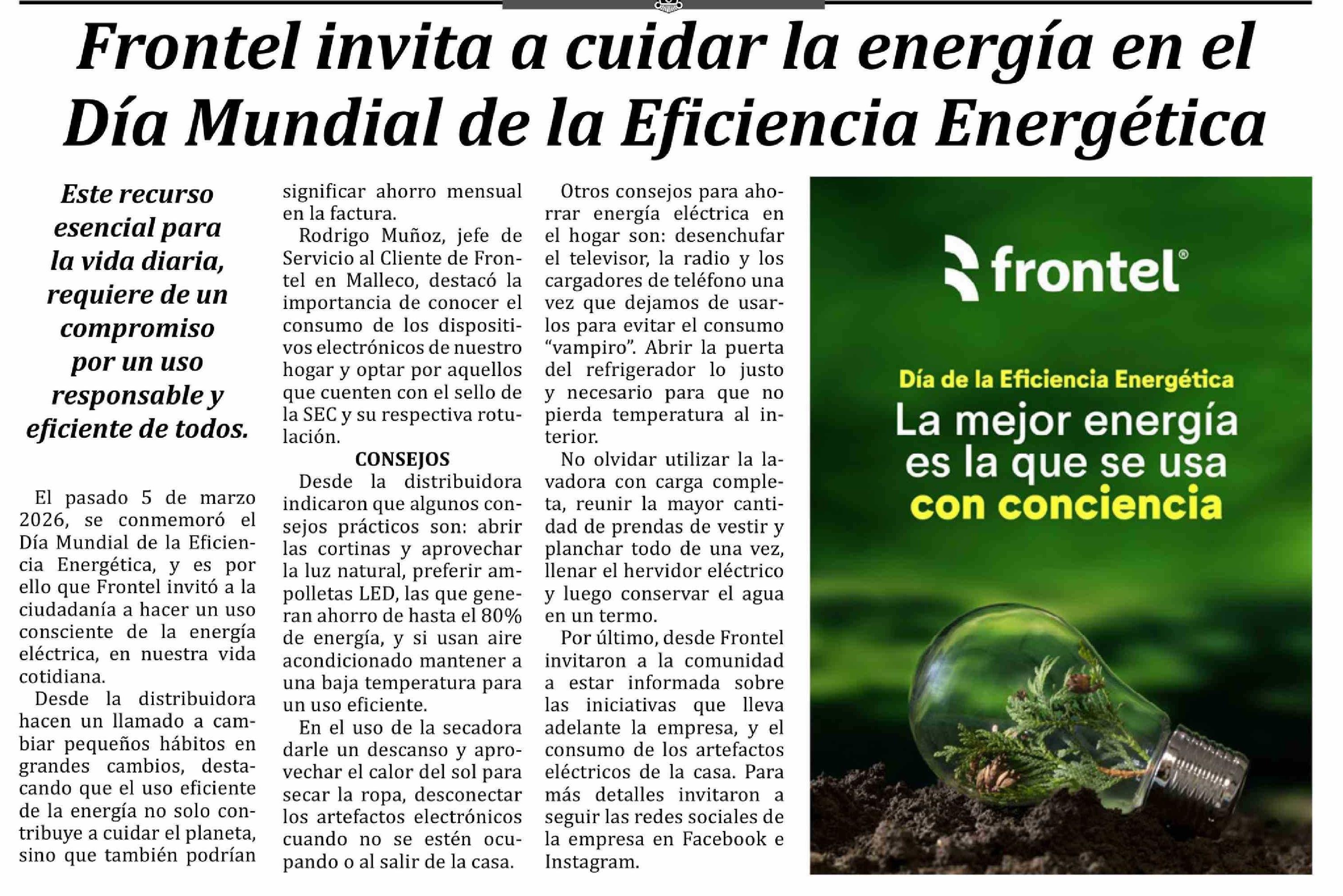 Frontel invita a cuidar la energía en el Día Mundial de la Eficiencia Energética 07-03-2026 Las Noticias |
