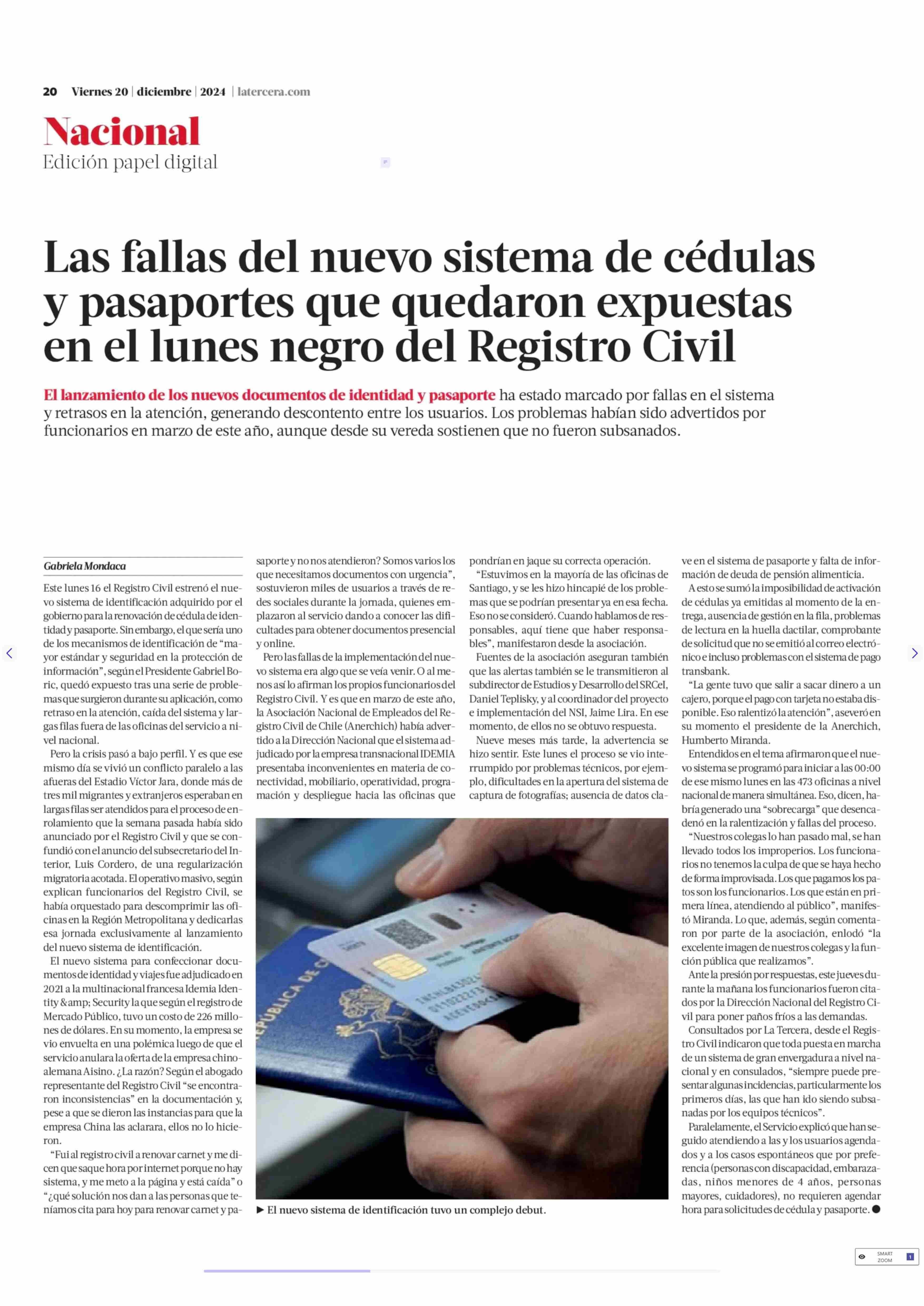 Las fallas del nuevo sistema de cédulas y pasaportes que quedaron expuestas en el lunes negro del Registro Civil 20-12-2024 La Tercera |