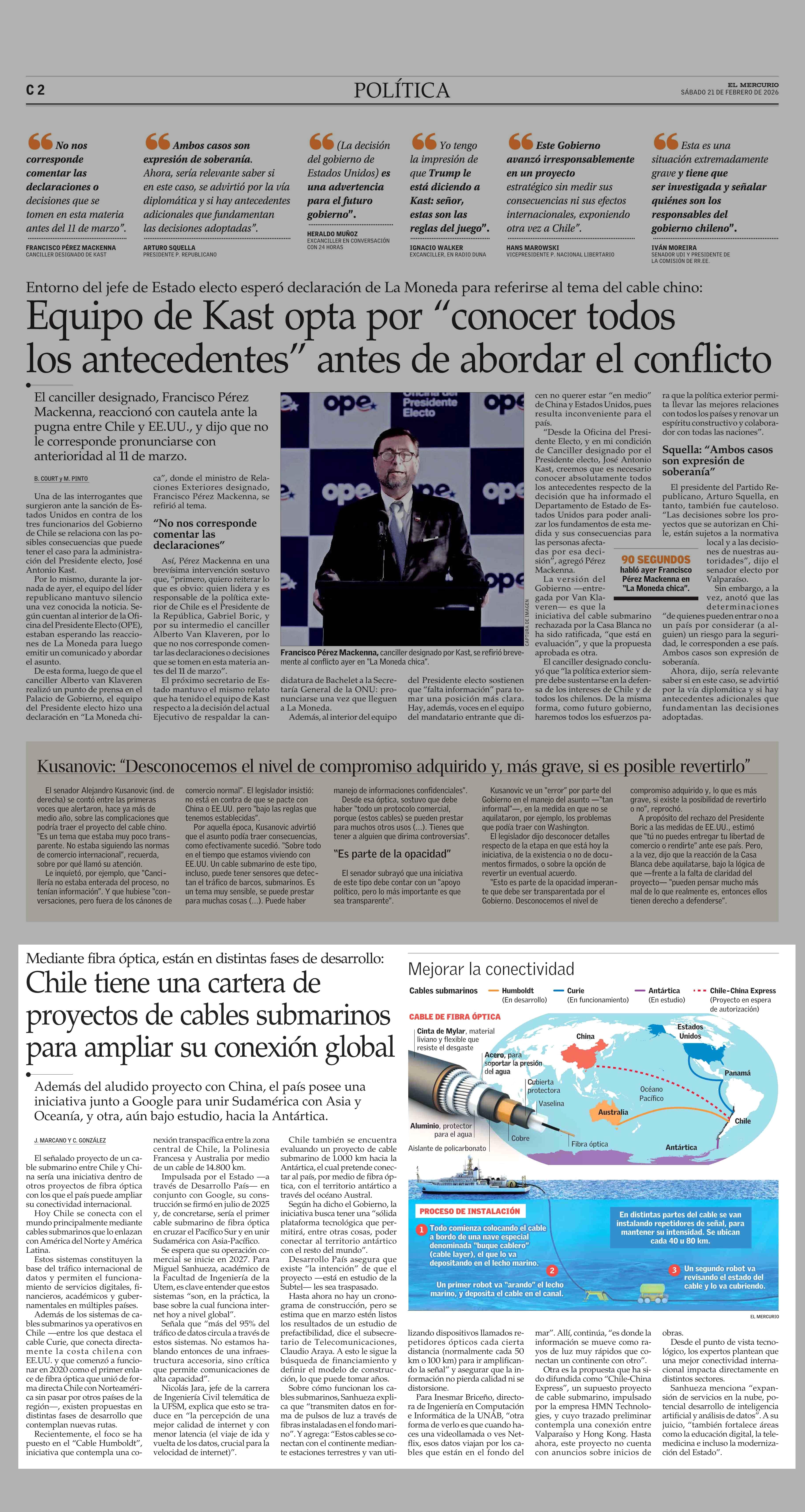 Chile tiene una cartera de proyectos de cables submarinos para ampliar su conexión global 21-02-2026 El Mercurio |