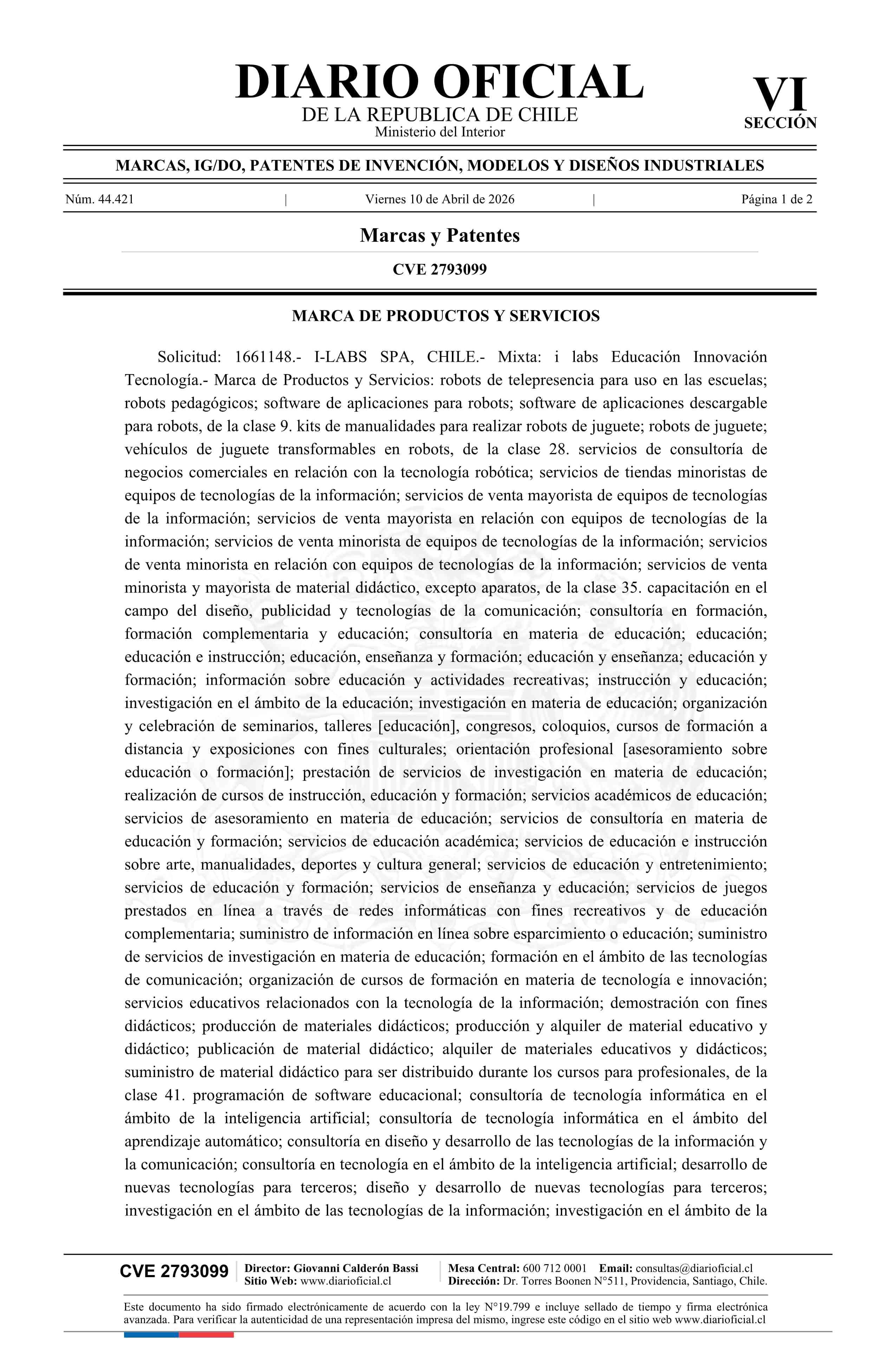 Solicitud número 1661148.- i labs Educación Innovación Tecnología