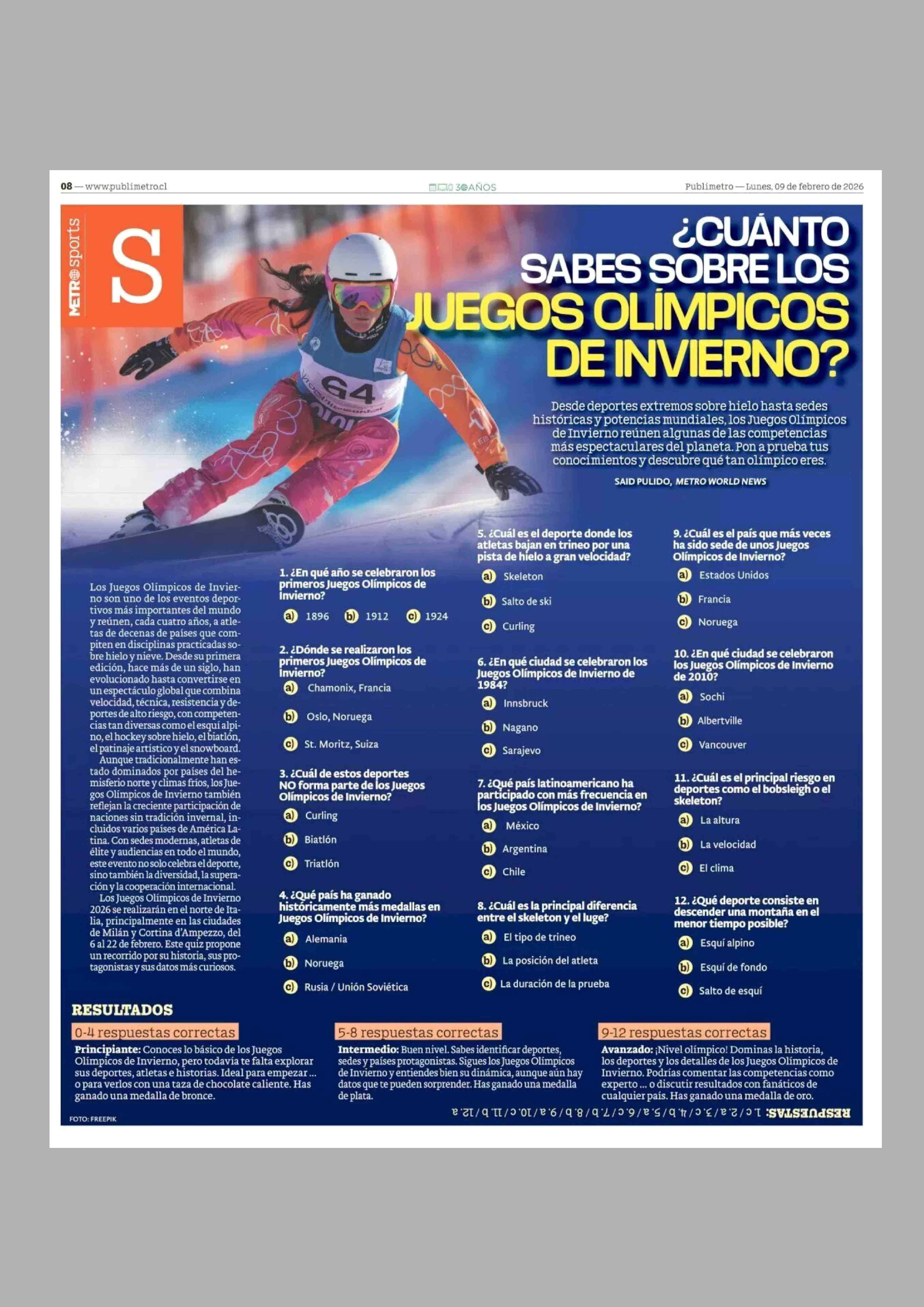 ¿CUÁNTO SABES SOBRE LOS JUEGOS OLÍMPICOS DE INVIERNO? 09-02-2026 Publimetro |