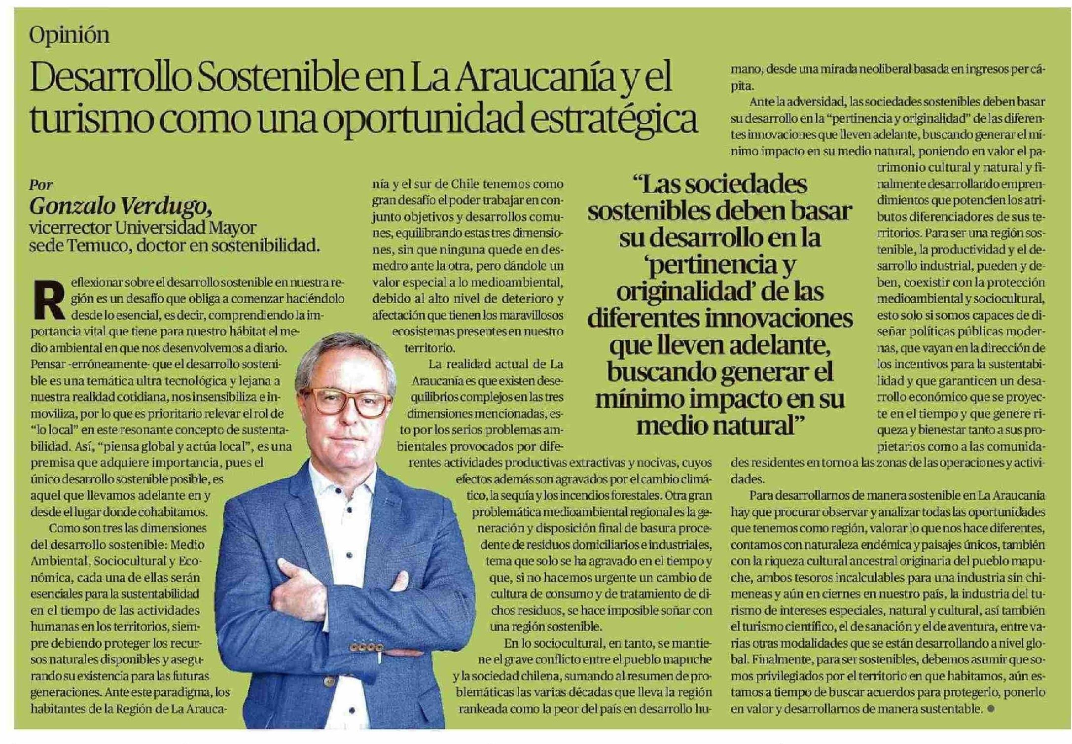 | Título: | COLUMNAS DE OPINIÓN: Desarrollo Sostenible en La Araucanía y el turismo como una oportunidad estratégica |
