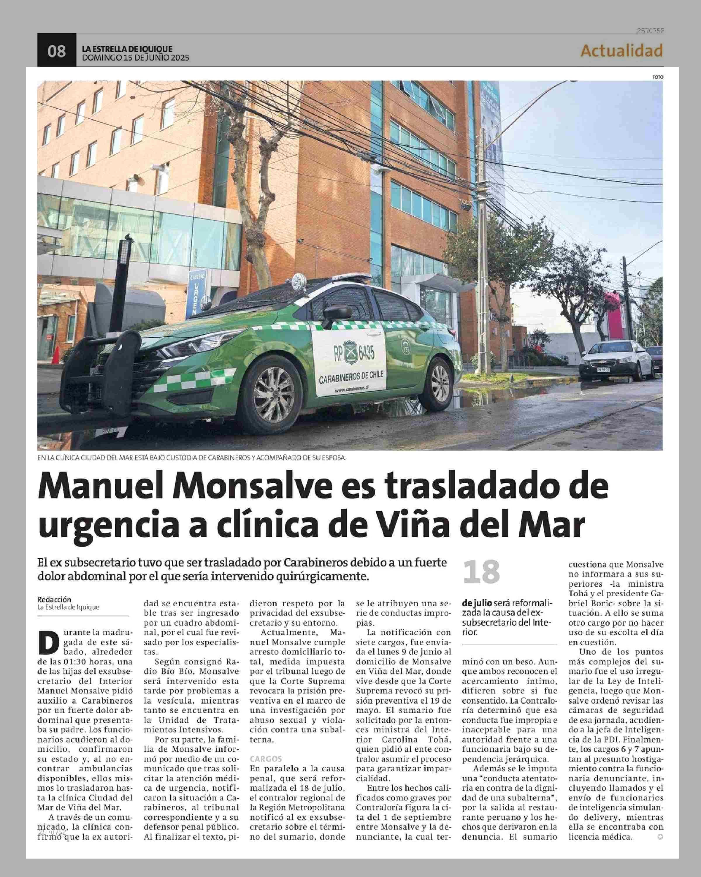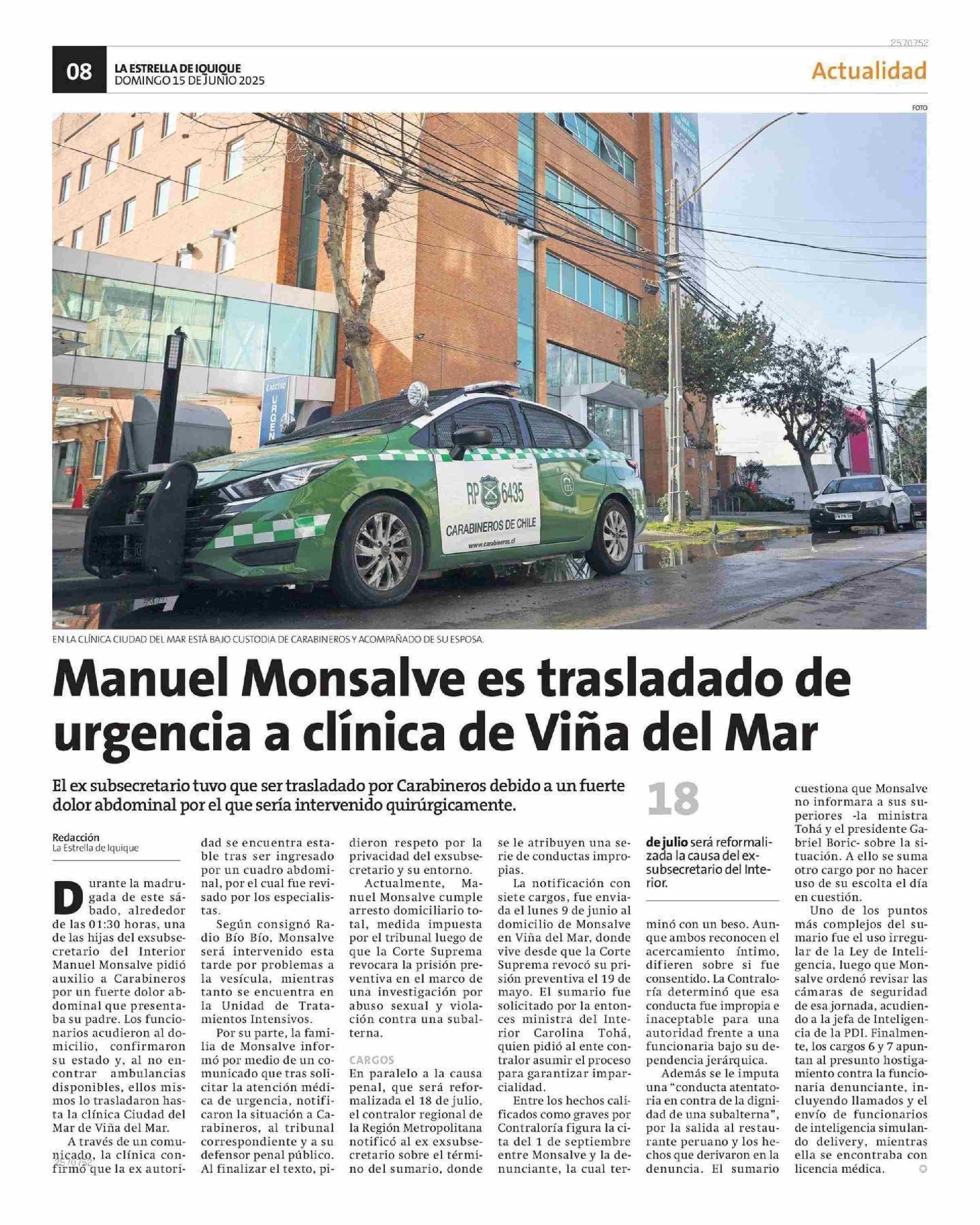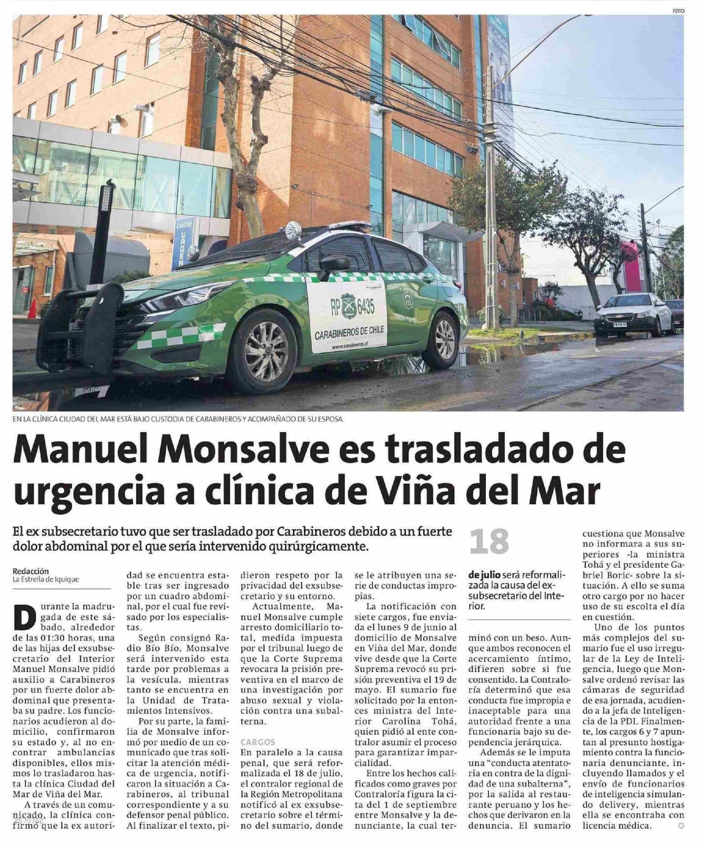 Manuel Monsalve es trasladado de urgencia a clínica de Viña del Mar 15-06-2025 La Estrella de Iquique |