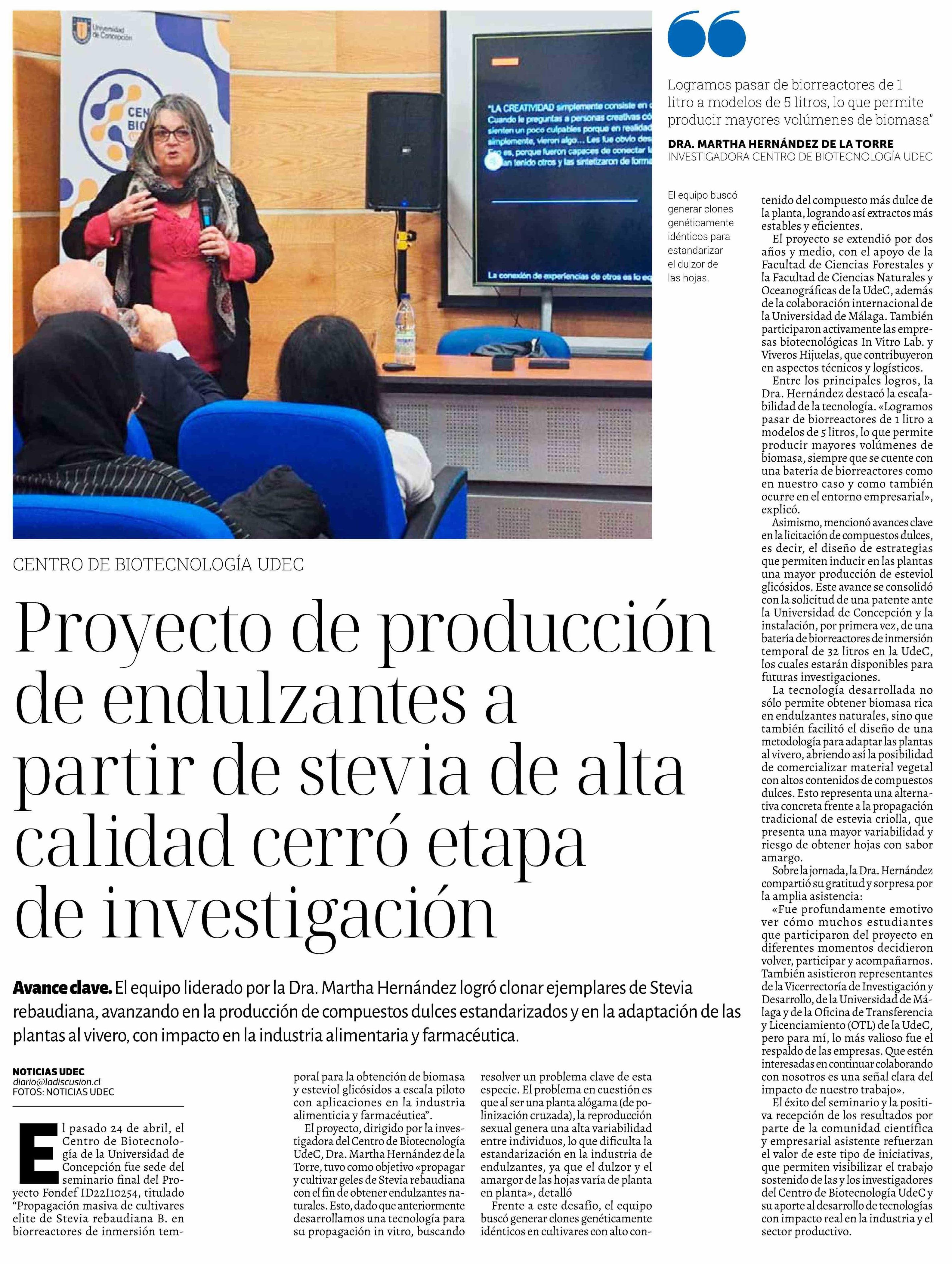 Proyecto de producción de endulzantes a partir de stevia de alta calidad cerró etapa de investigación 27-04-2025 La Discusión |