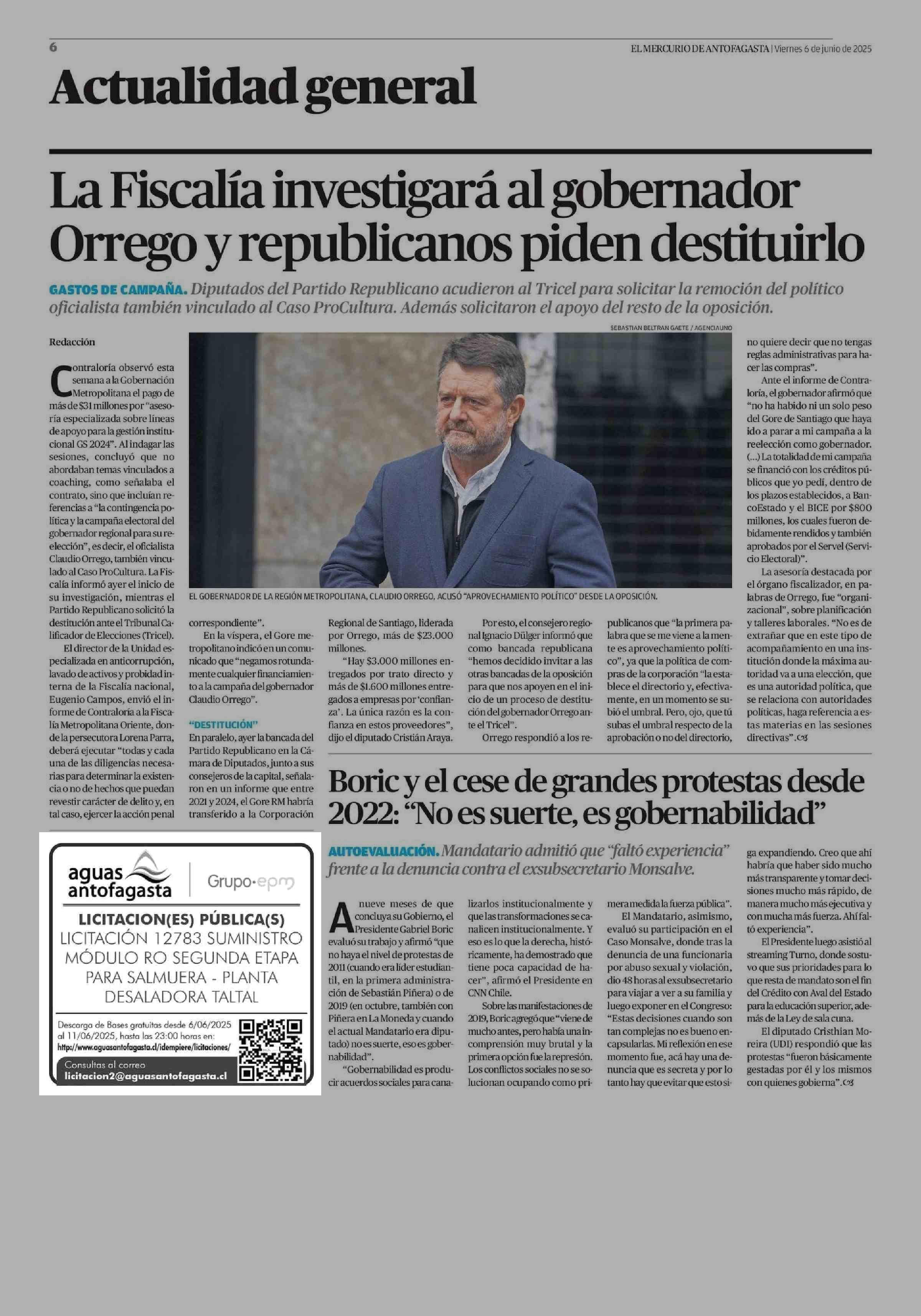AVISO LICITACIONES: aguas antofagasta 06-06-2025 El Mercurio de Antofagasta |