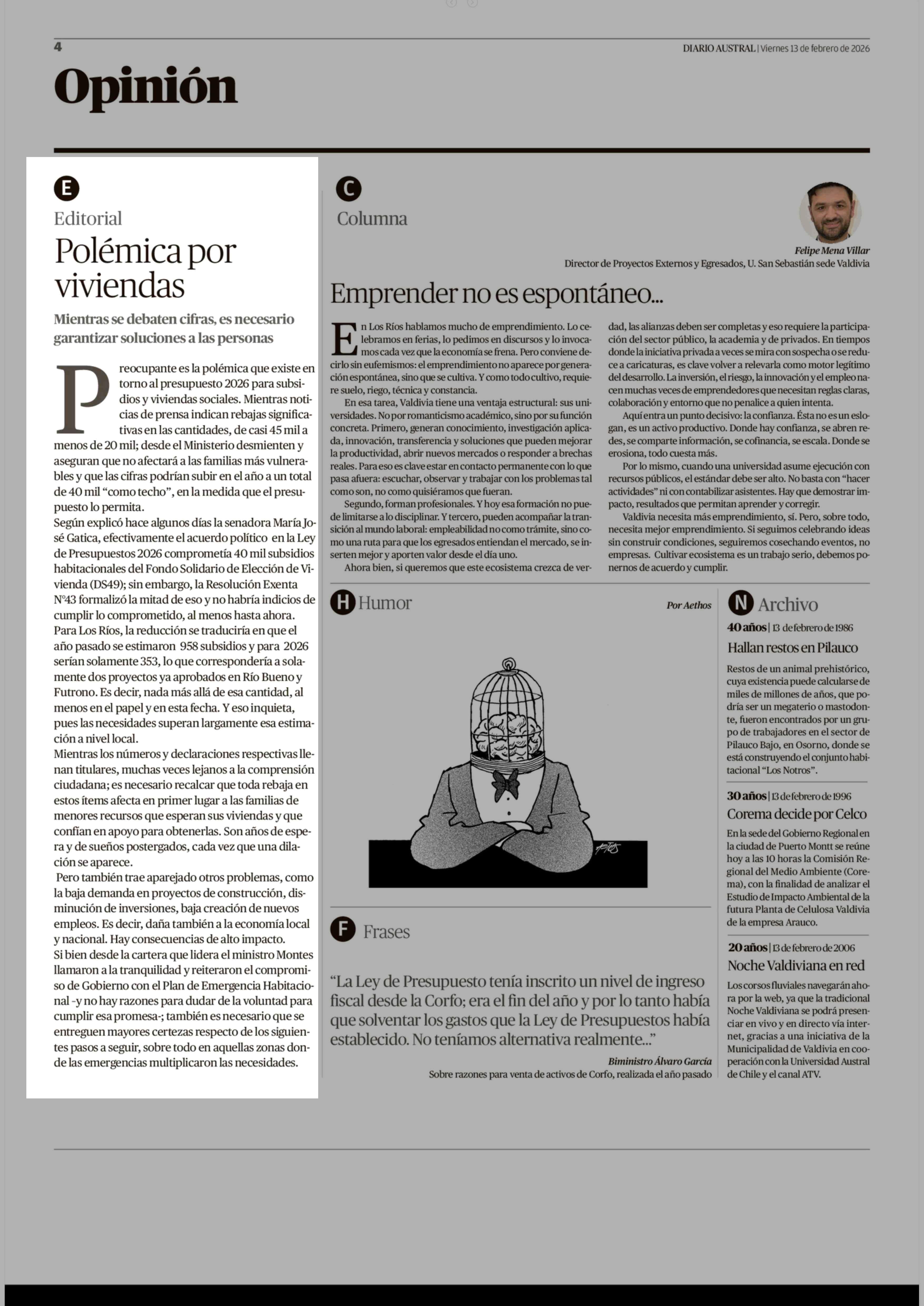 Fecha: 13-02-2026 Sector: Editorial Región: Región de Los Ríos