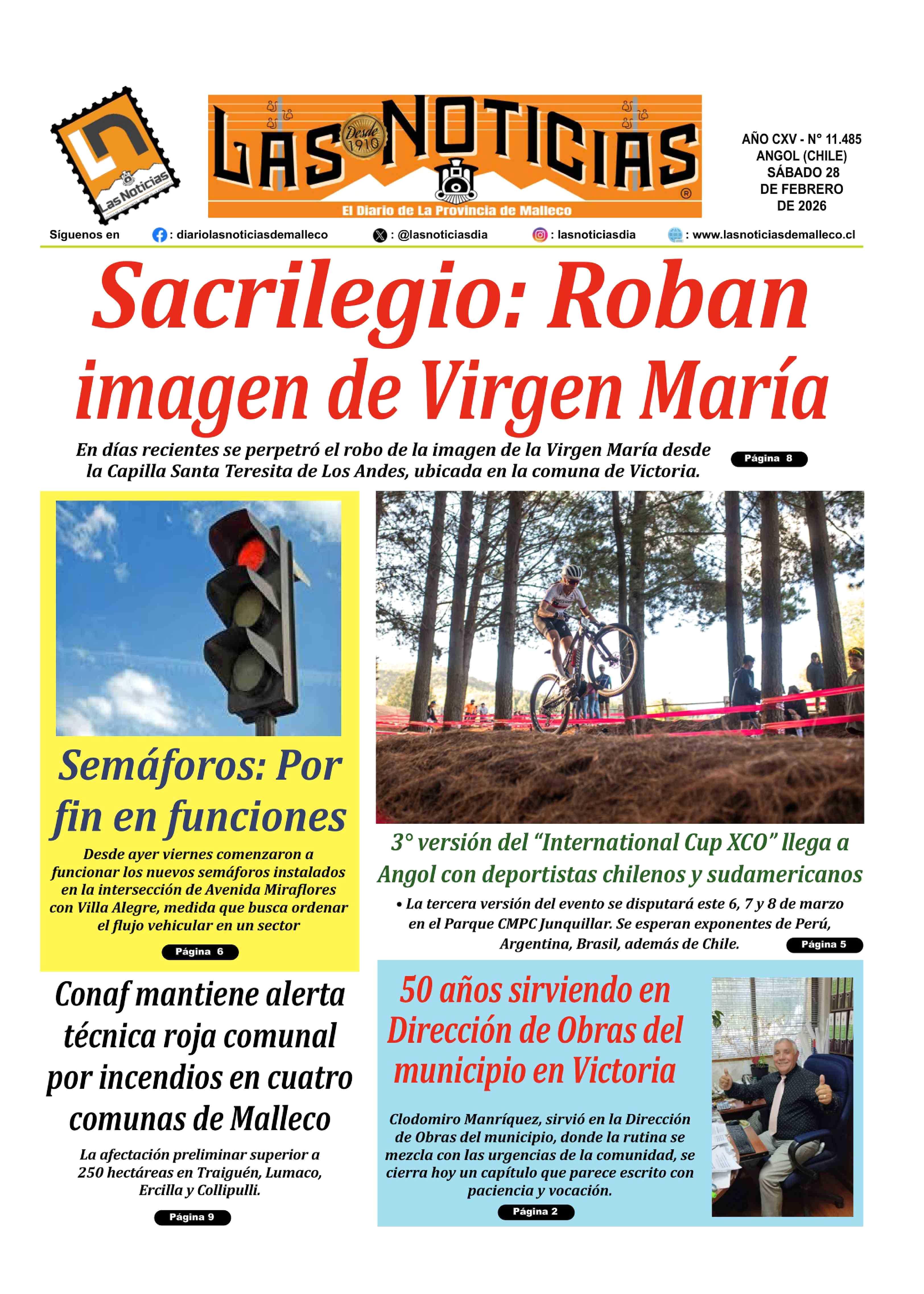 PORTADA LAS NOTICIAS DE MALLECO CHILE 28-02-2026 Las Noticias |