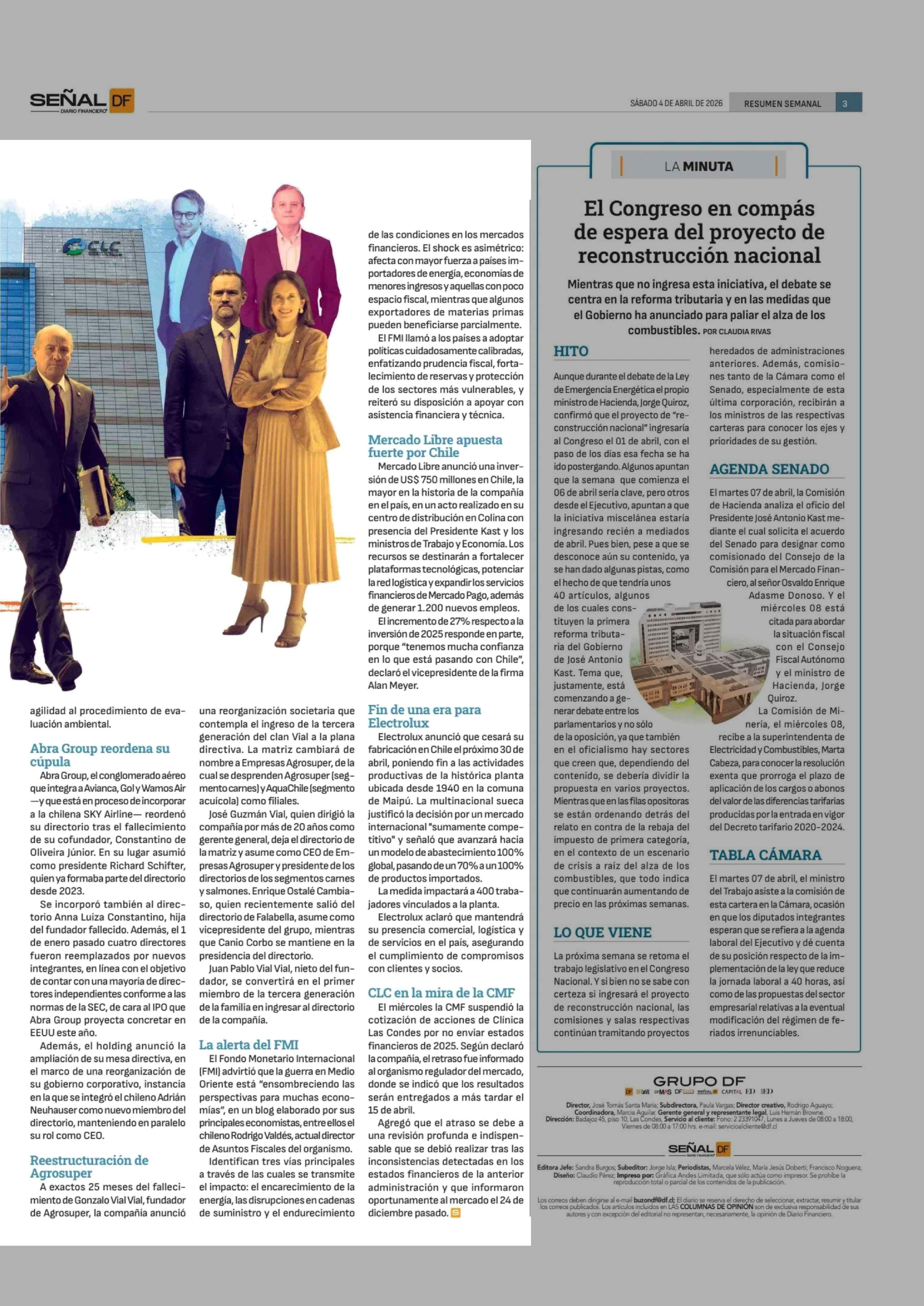 Fuente: Diario Financiero (Diario Financiero - Señal DF Sabado) Página(s): 2-3