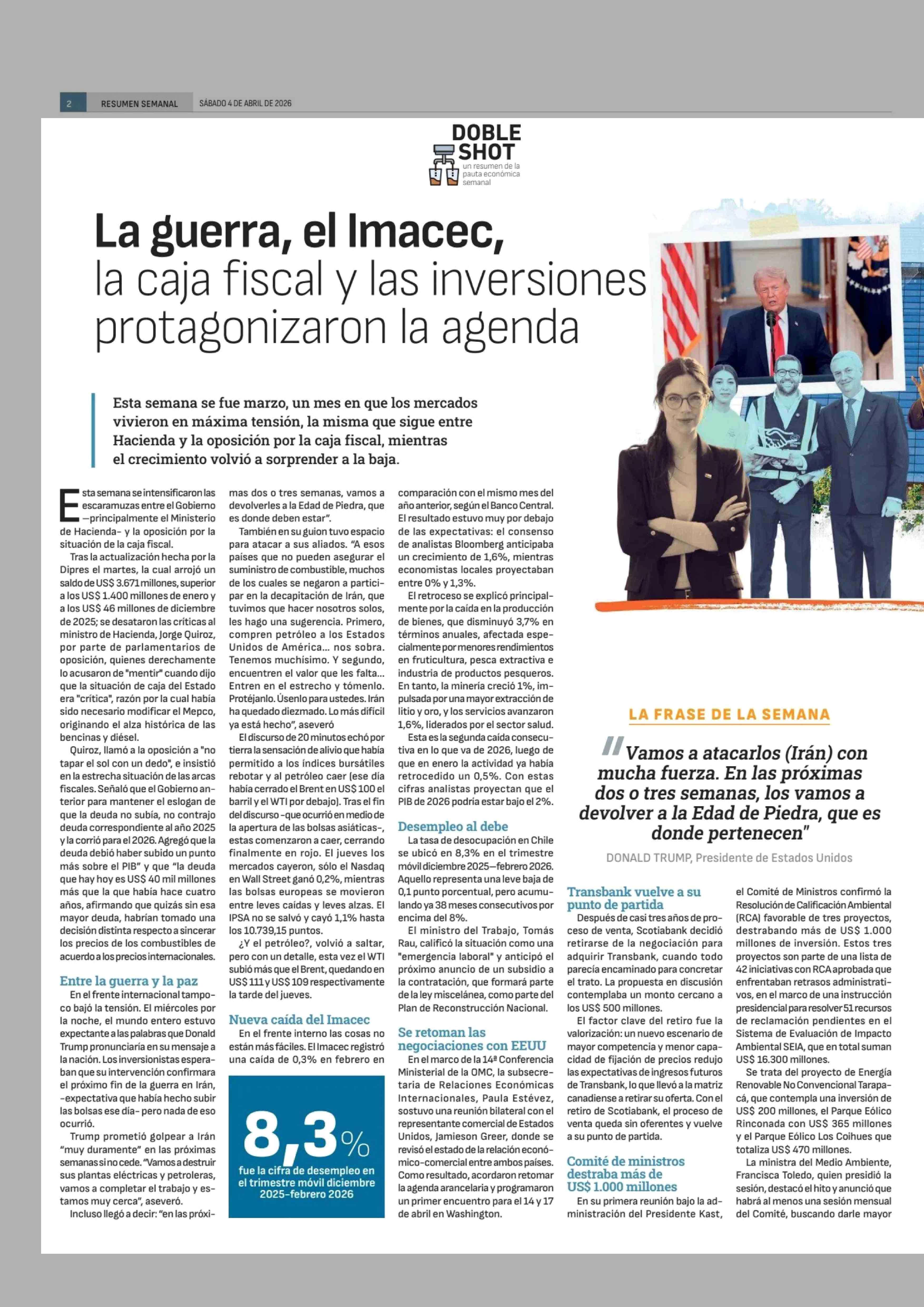 Título: La guerra, el Imacec, la caja fiscal y las inversiones protagonizaron la agenda