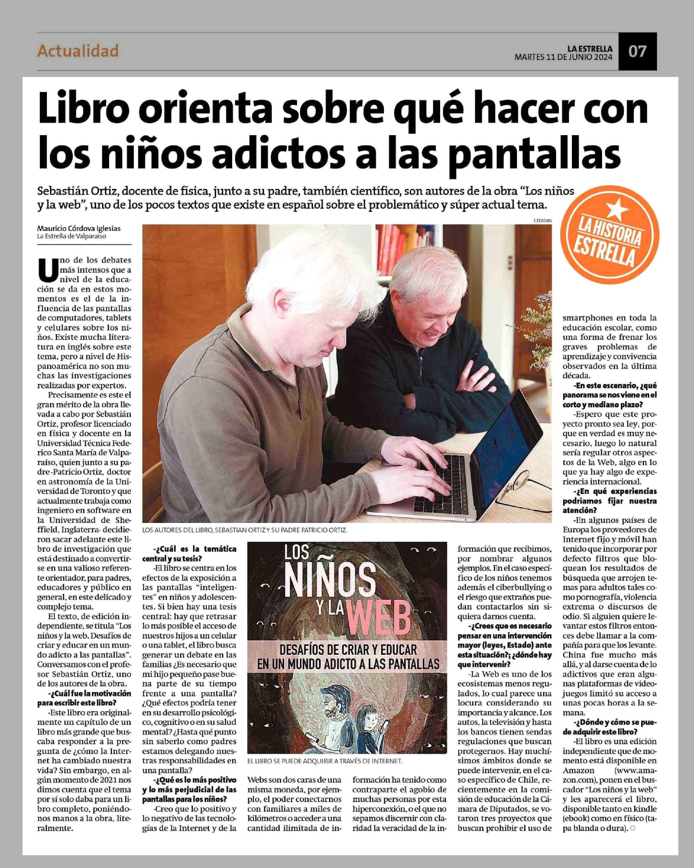 Libro orienta sobre qué hacer con los niños adictos a las pantallas 11-06-2024 La Estrella de Concepción |