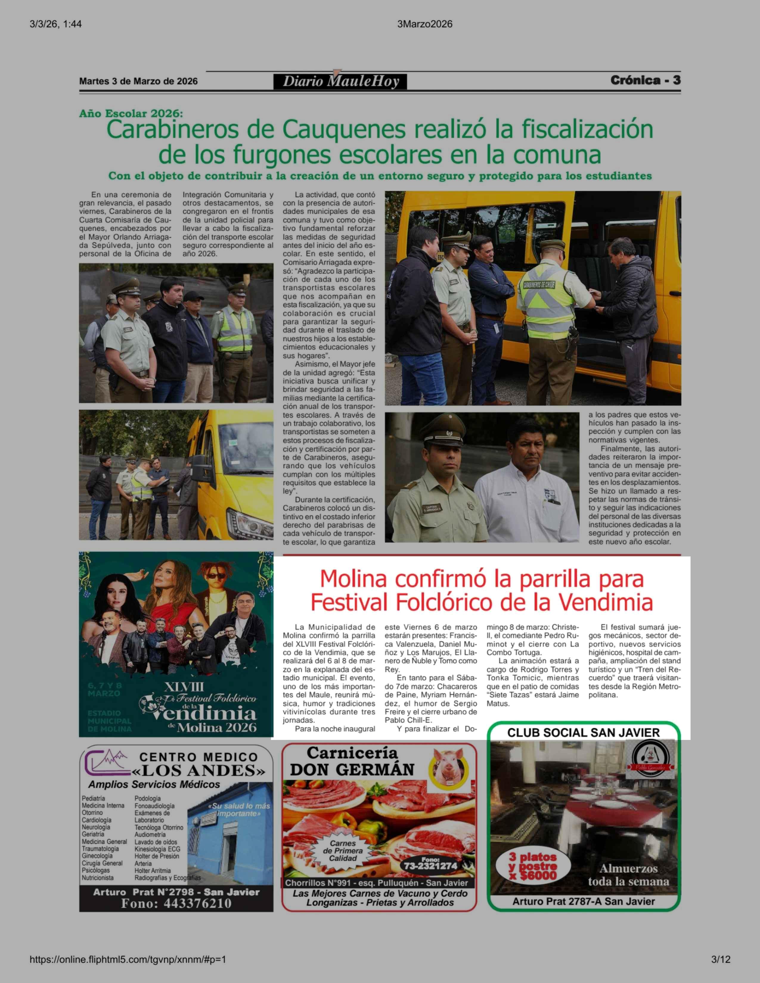 | Fecha: | 03-03-2026 | Sector: | Noticia general | Región: | Región del Maule |