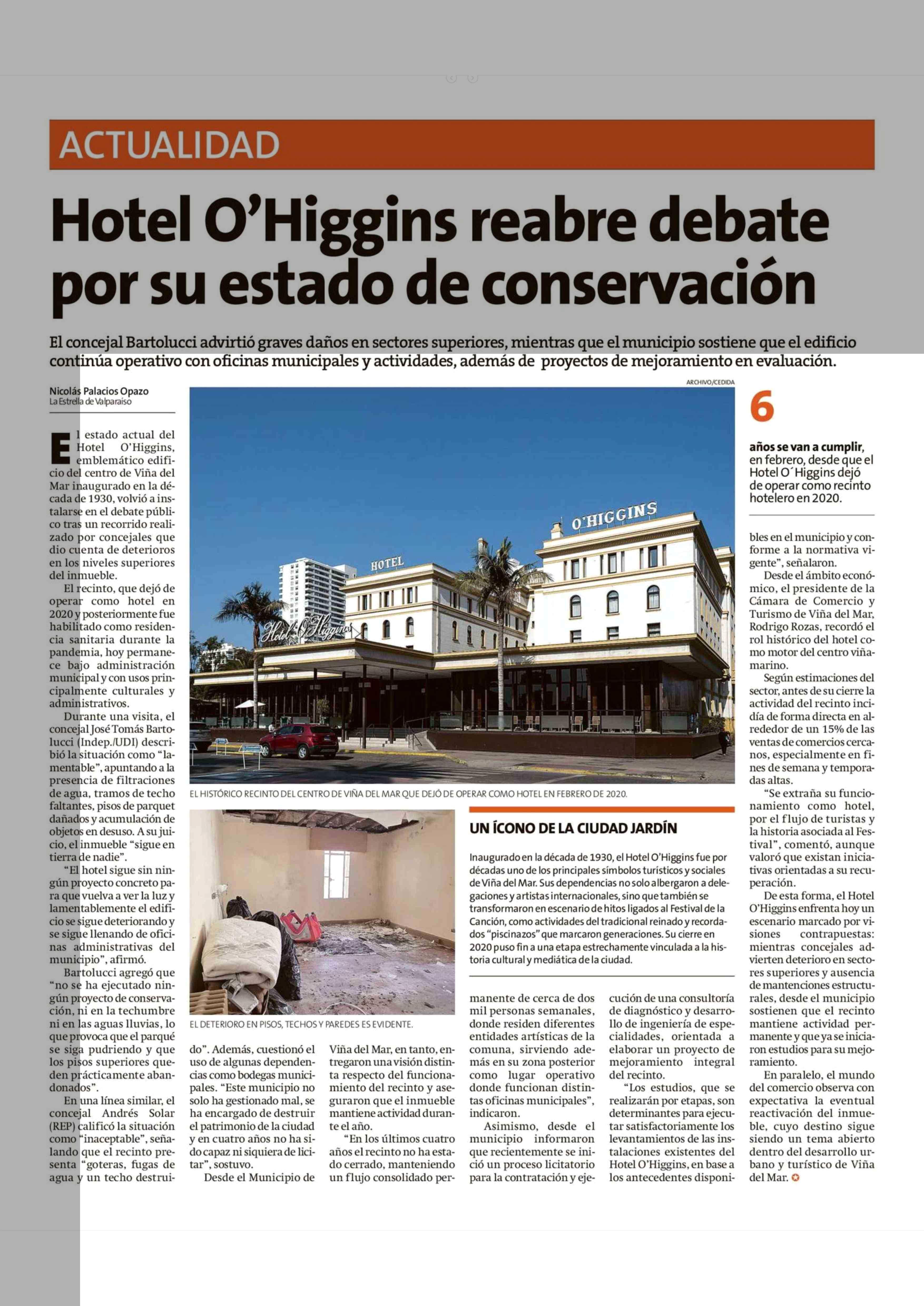 Hotel O'Higgins reabre debate por su estado de conservación 30-01-2026 La Estrella de Valparaíso |