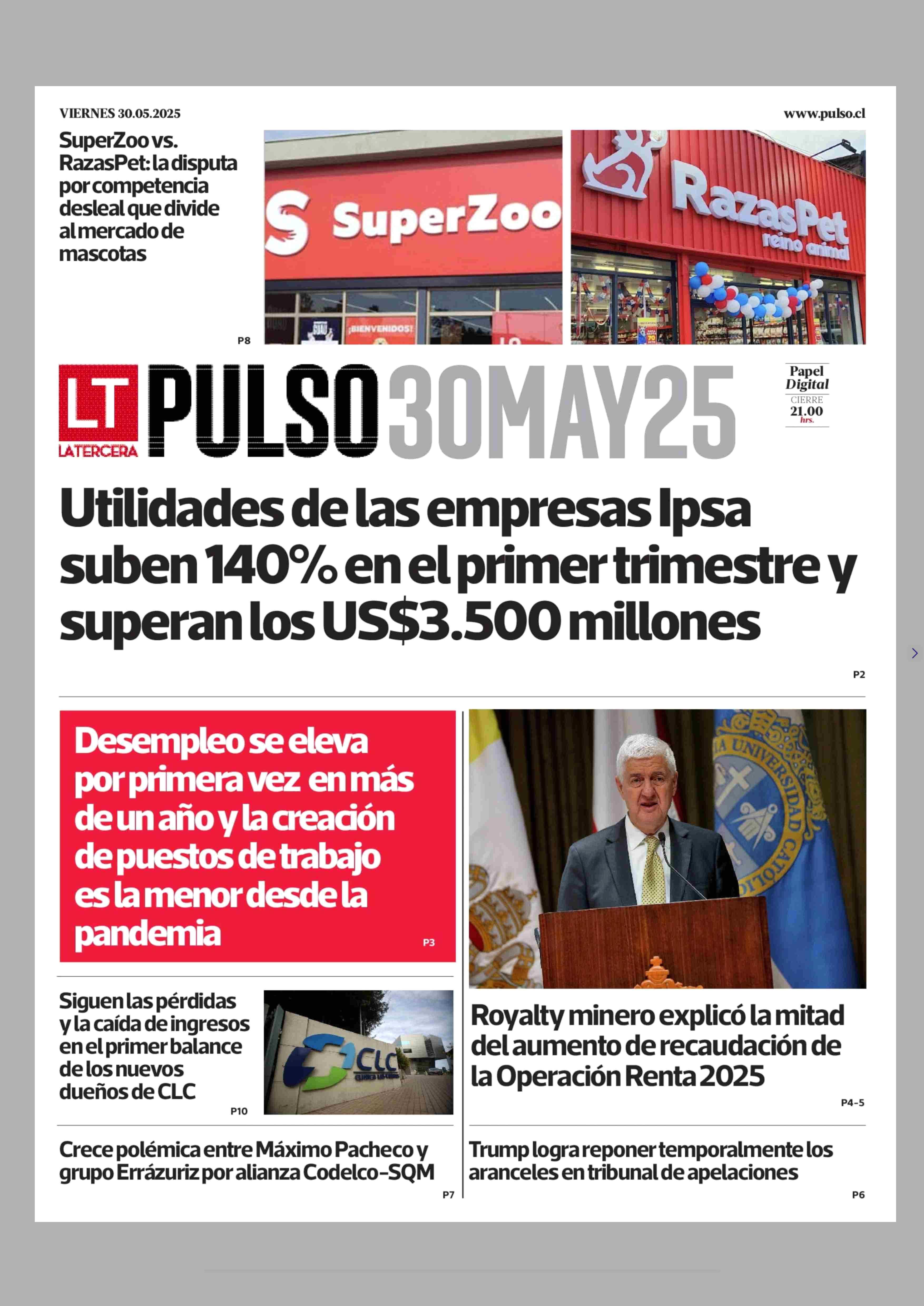 PORTADA LA TERCERA (PULSO) - CHILE 30-05-2025 La Tercera |